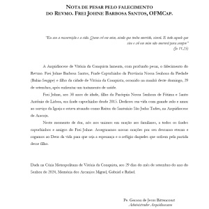 Nota de pesar pelo falecimento do Revmo. Frei Johne Barbosa Santos, OFMCap.