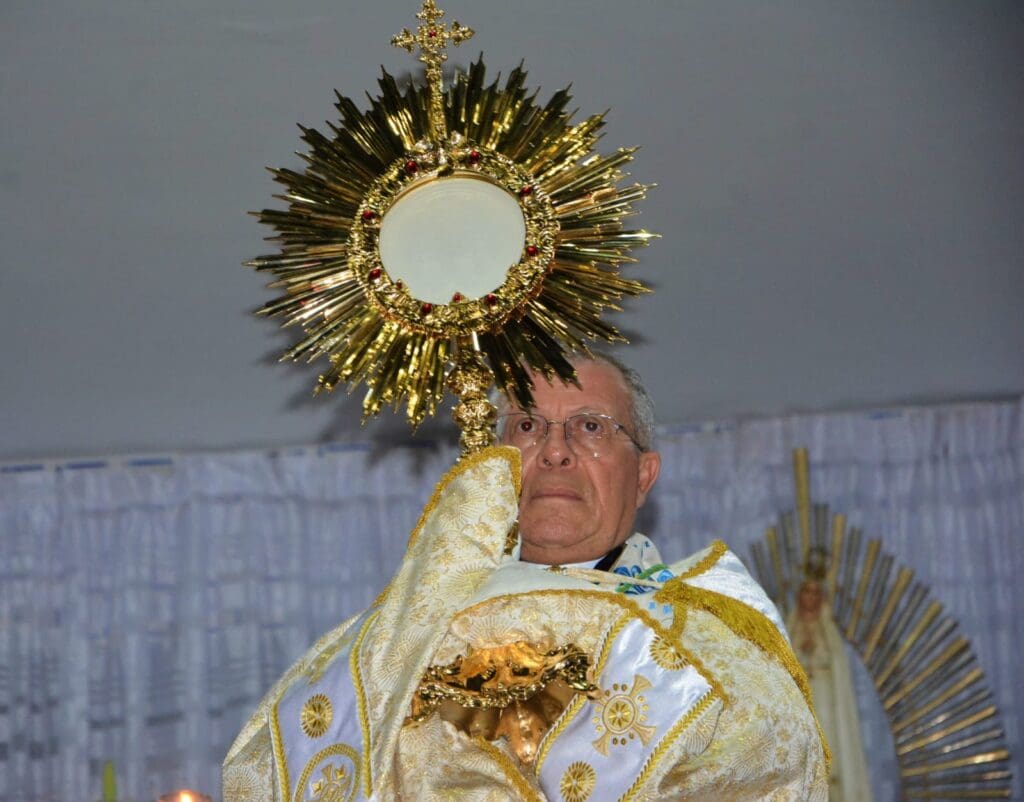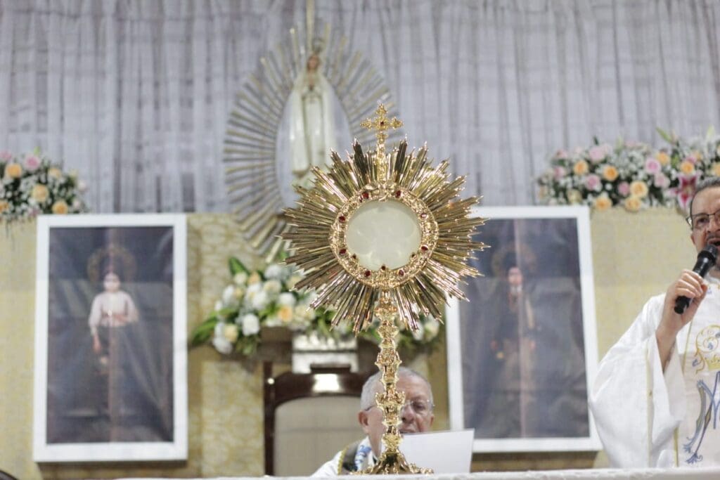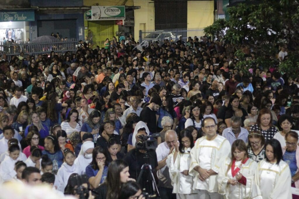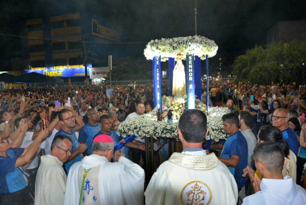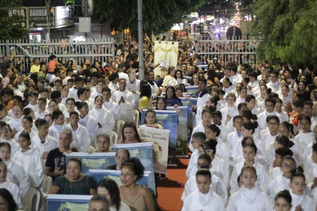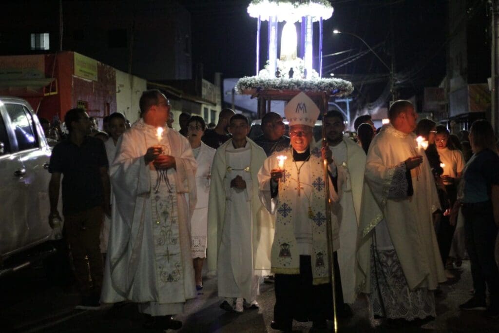 Após a Santa Missa, com o canto “a treze de maio…”, foi iniciada a procissão luminosa com a presença do Bispo e dos Frades e, findada a procissão, foi dada a bênção do Santíssimo Sacramento para todo povo de Deus.