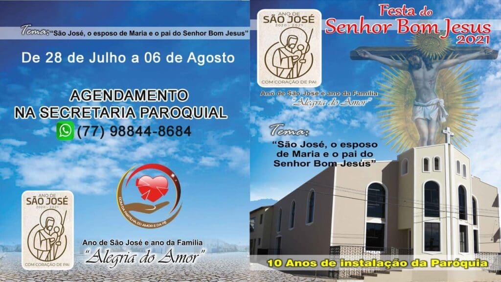 Durante os dias 28 de julho a 5 de agosto, a Paróquia Senhor Bom Jesus, em Bom Jesus da Serra, realizou o novenário em honra ao Senhor Bom Jesus. Que nesse ano teve por tema: São José, esposo da Virgem Maria e pai do Senhor Bom Jesus.