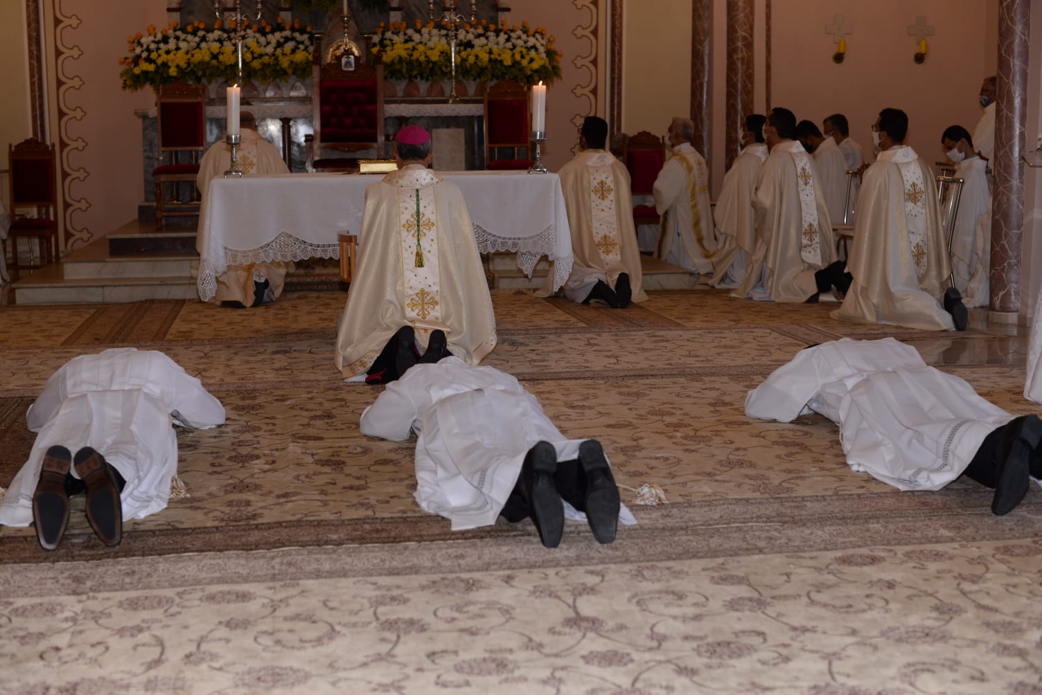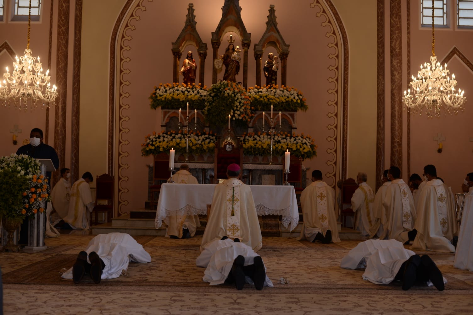 Procedeu-se com a Prece Litânica, e logo após, receberam a Dalmática e a Estola, vestes litúrgicas que lhe são próprias, e depois o livro do Santos Evangelhos, sendo acolhidos por Dom Josafá e a assembleia presente com uma calorosa salva de palmas.