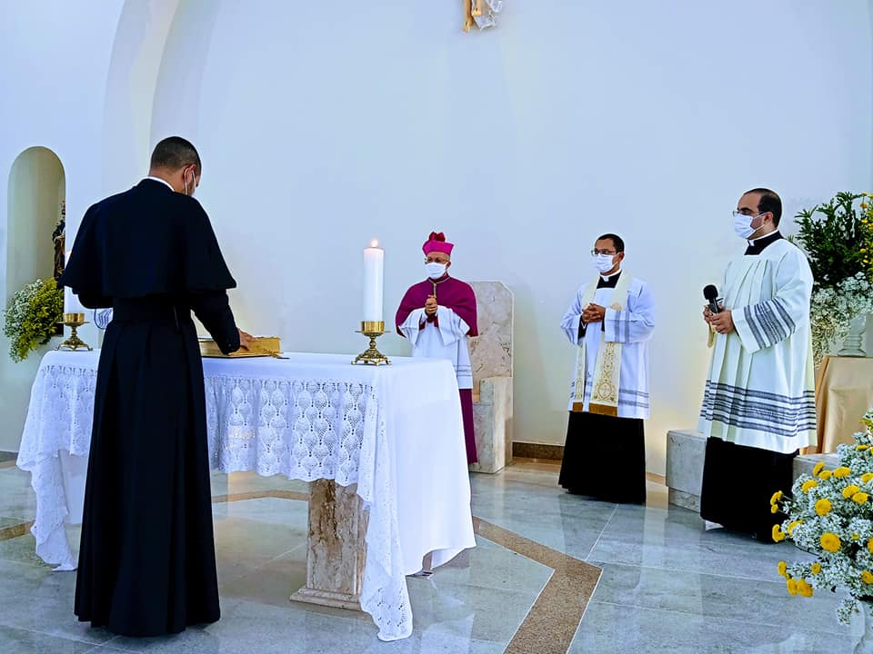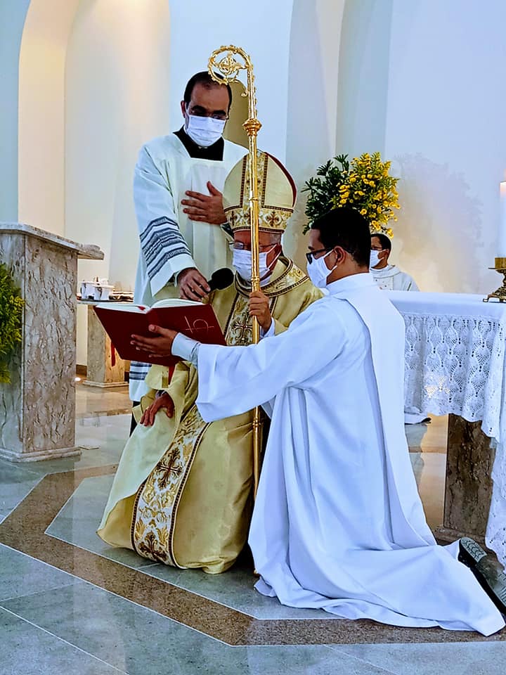 Após a acolhida, o Diác. Dhonis fez o seu juramento de fidelidade sobre o Livro dos Santos Evangelhos, diante do Arcebispo Metropolitano e de todos os presentes, prosseguindo com a Oração pelas Vocações.