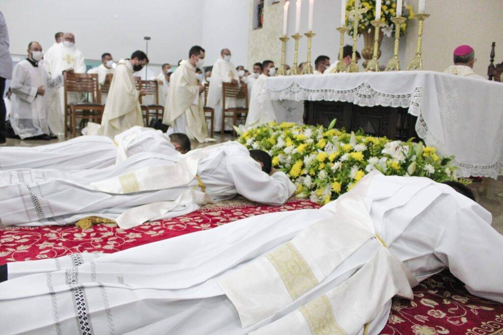 No silêncio do coração, Dom Josafá e todos os presbíteros presentes pediram a Deus pelos ordenandos. Esses, estando de joelhos, em silêncio, receberam a imposição das mãos do Arcebispo sobre sua cabeça, seguido pelos presbíteros.