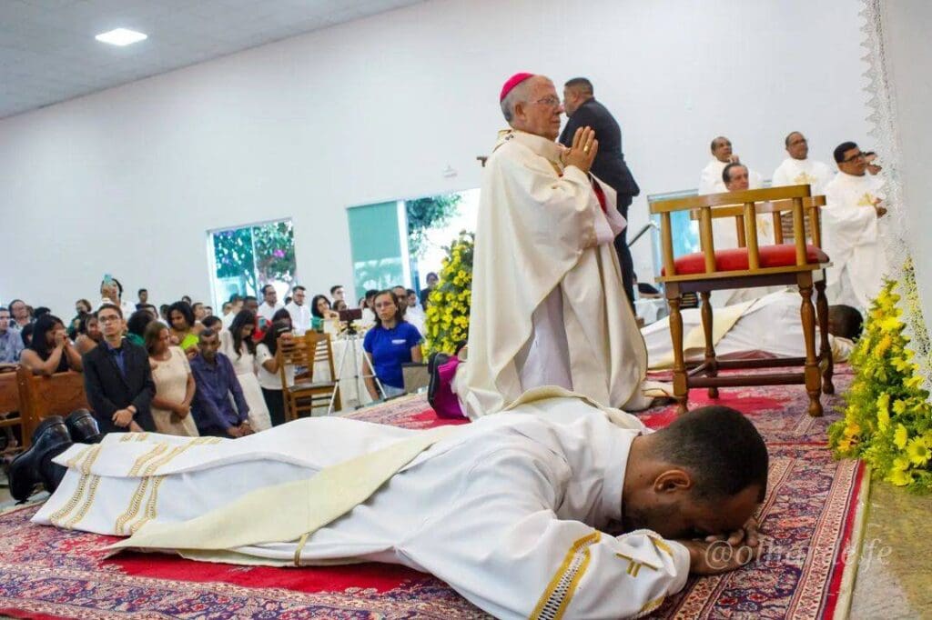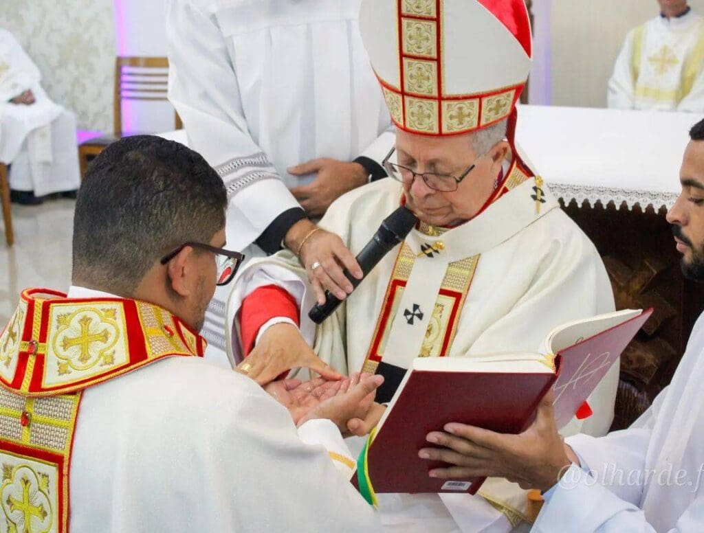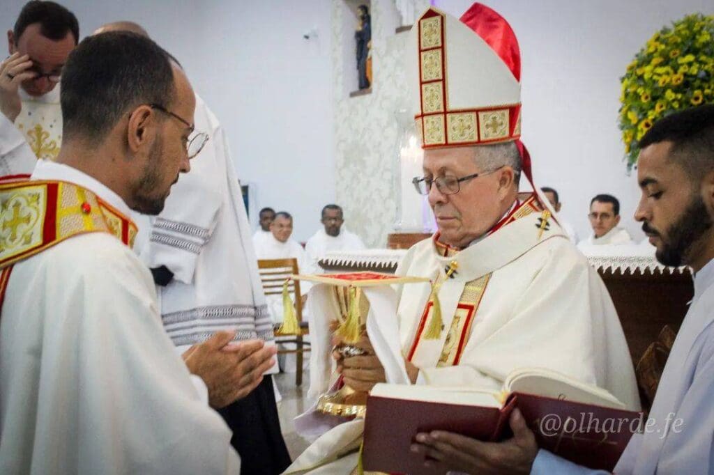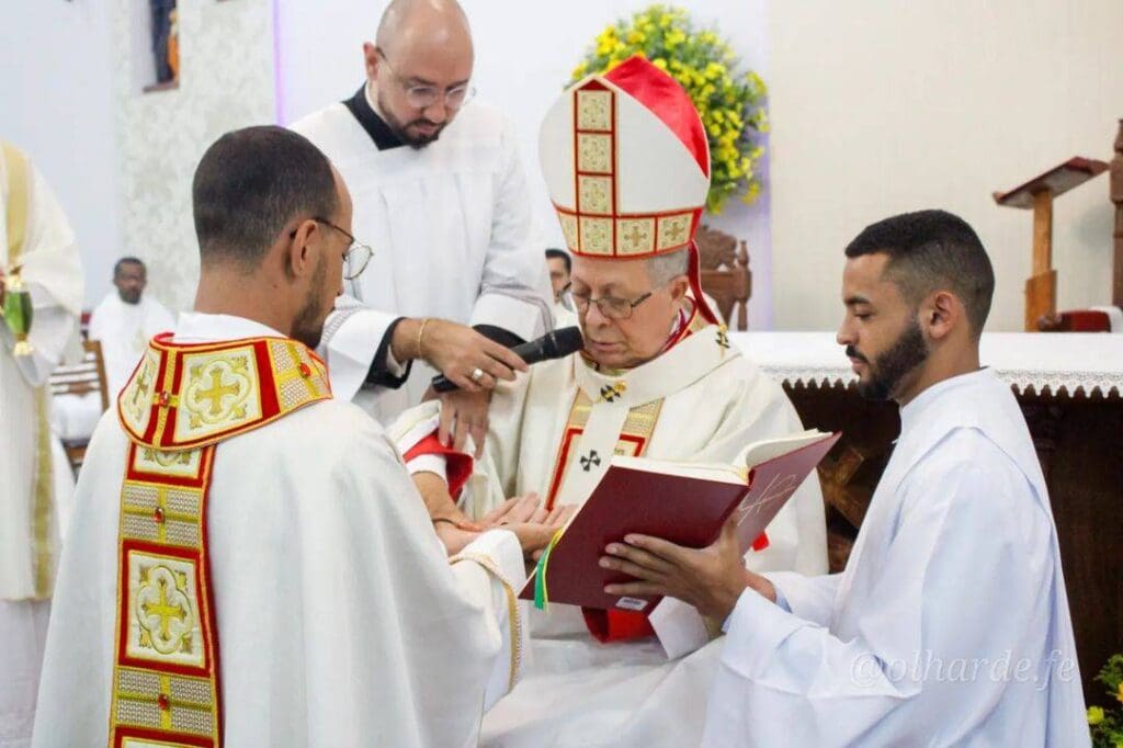 Terminada a Liturgia da Palavra, o Pe. Alessandro Alves Cardoso, Reitor da Comunidade de Teologia Nossa Senhora das Vitórias, convidou os Diáconos para se apresentarem ao Ordenante. Em um breve diálogo, Dom Josafá interrogou se o candidato era digno do Ministério.