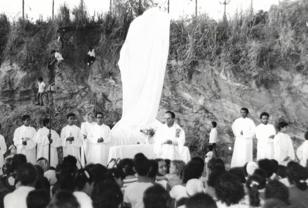Padre Juracy inaugura imagem de São Cristóvão na beira da pista, em 31 de julho 1983.