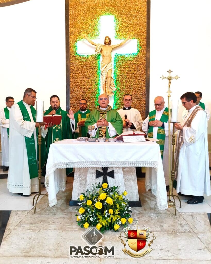 Os Diáconos permanentes: Diác. Luciano Lima Santana, Diác. Miron Dias dos Santos e Diác. José Dias do Nascimento e o Diácono transitório Juliano Neres de Campos, serviram a Liturgia. A Igreja Matriz de Santo Antônio ficou repleta de fiéis das comunidades urbanas e rurais de Itarantim e de Vitória da Conquista, além de seminaristas, religiosas, consagrados, autoridades políticas (prefeito, vice e vereadores).