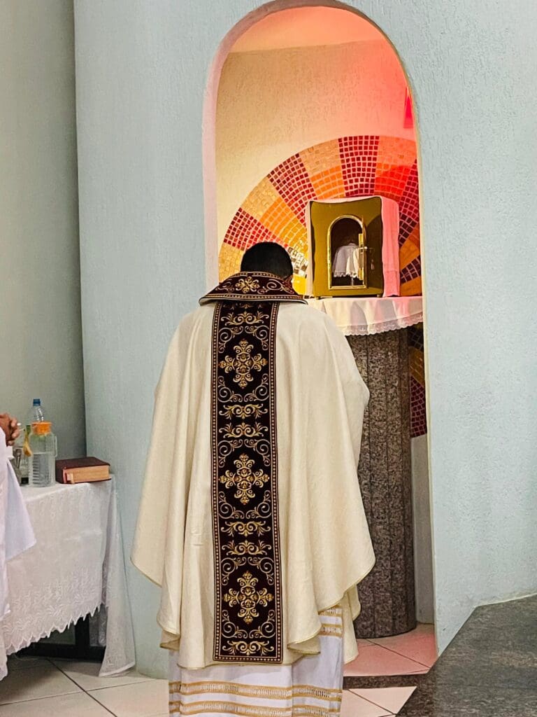 A Santa Missa prosseguiu com a oração do Credo, preces da assembleia e liturgia eucarística. Após a oração pós-comunhão, o padre Lucas leu a ata de posse. Houve algumas mensagens e homenagens. Por fim, o novo Administrador dirigiu breves palavras de agradecimento a todo Povo de Deus, muito mais aos da Paróquia São Paulo Apóstolo, primeira porção do povo de Deus a ele confiada.