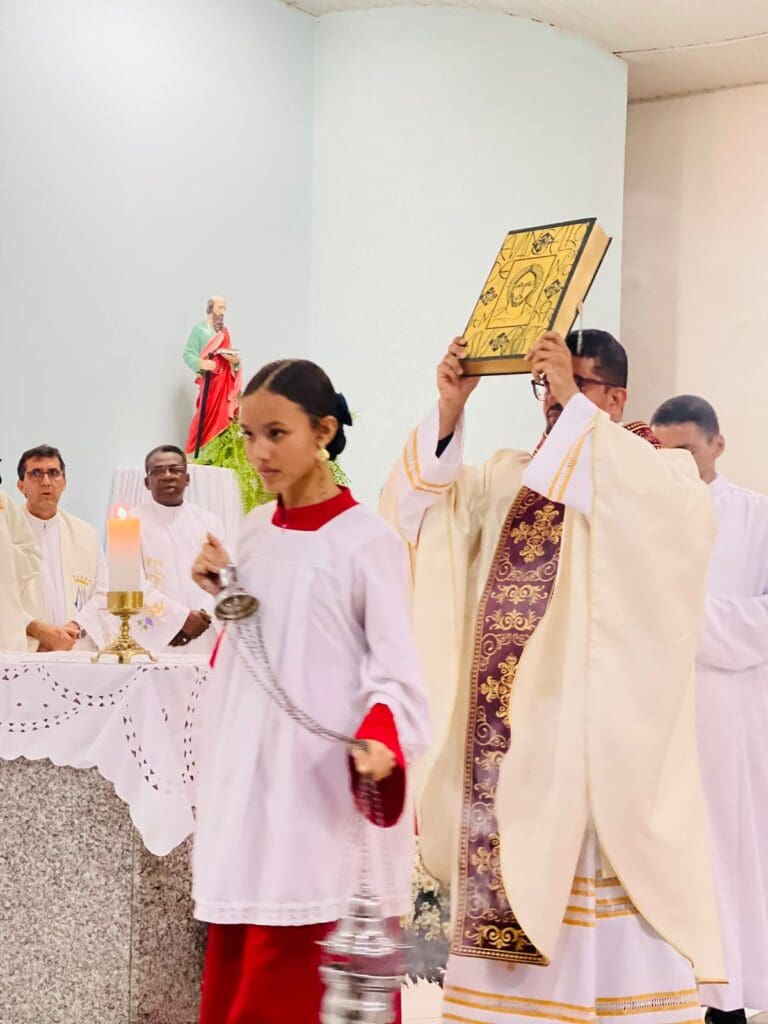 Após a saudação inicial, realizada por Dom Josafá, o Chanceler do Arcebispado, Padre Lucas Conceição, fez a leitura da provisão de nomeação. Em seguida, o padre Pericles fez a profissão de fé diante do Bispo e da comunidade paroquial. Então, seguiu-se a Liturgia da Palavra. Antes da aclamação ao Evangelho, o padre recebeu das mãos do Bispo o Evangeliário e proclamou o Evangelho. Depois da homilia feita por Dom Josafá, o padre renovou as promessas sacerdotais. O Bispo lhe entregou as chaves do sacrário e ele se dirigiu até a Capela do Santíssimo Sacramento para um breve momento de oração. Na sequência ele recebeu diversos instrumentos trazidos pelo povo da paróquia para bem desempenhar sua missão: as chaves da igreja; os santos óleos, e a estola presbiteral. Em seguida, Dom Josafá declarou empossado o padre Pericles como Administrador Paroquial da Paróquia São Paulo Apóstolo.