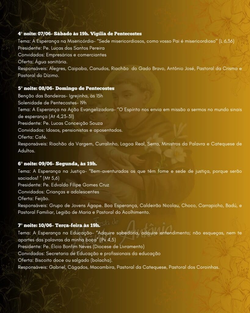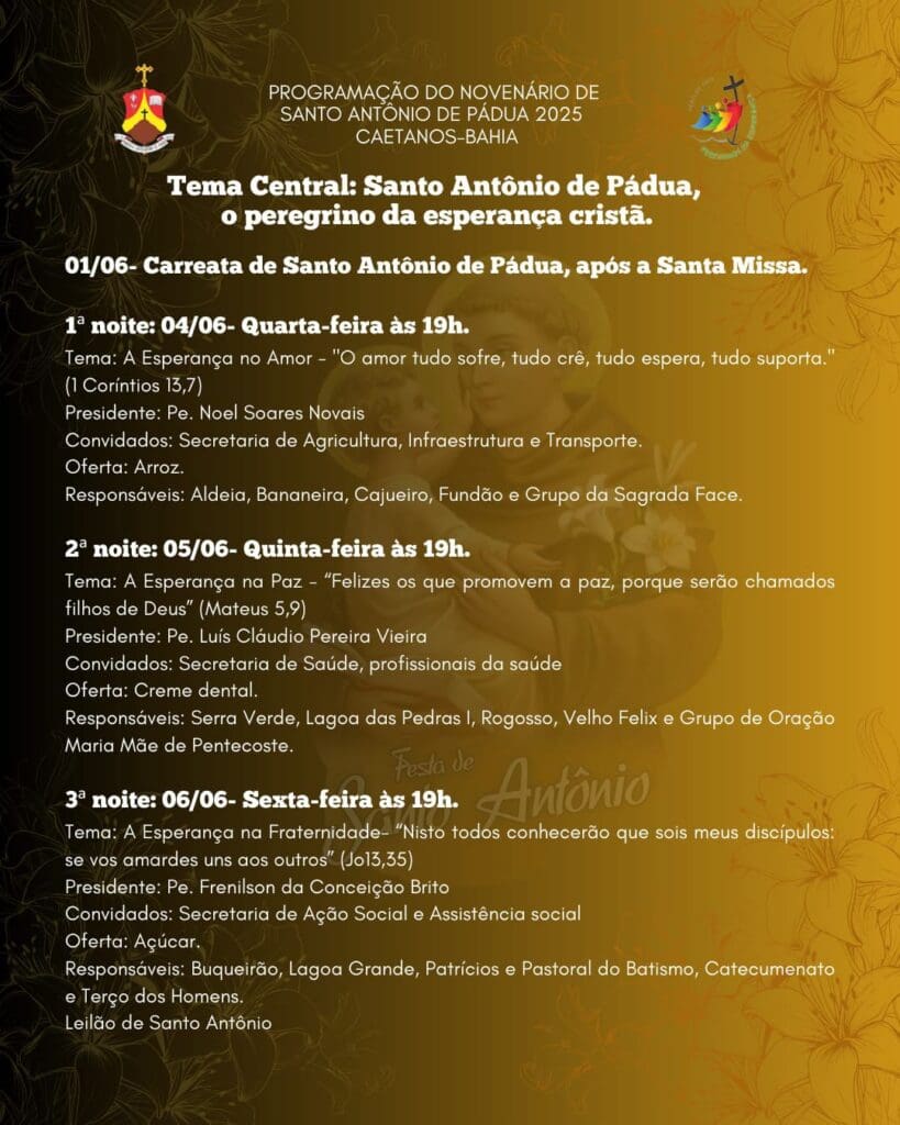Confira programação do Novenário de Santo Antônio – Caetanos