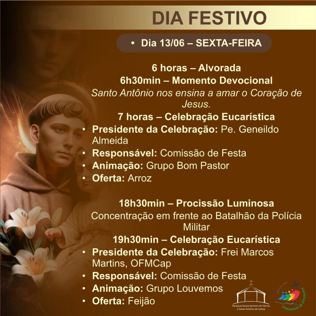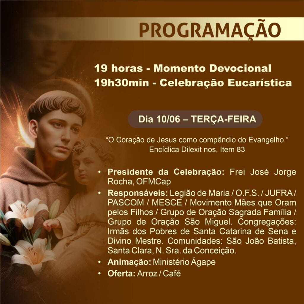 Confira programação do Tríduo de Santo Antônio – Paróquia Nossa Senhora de Fátima