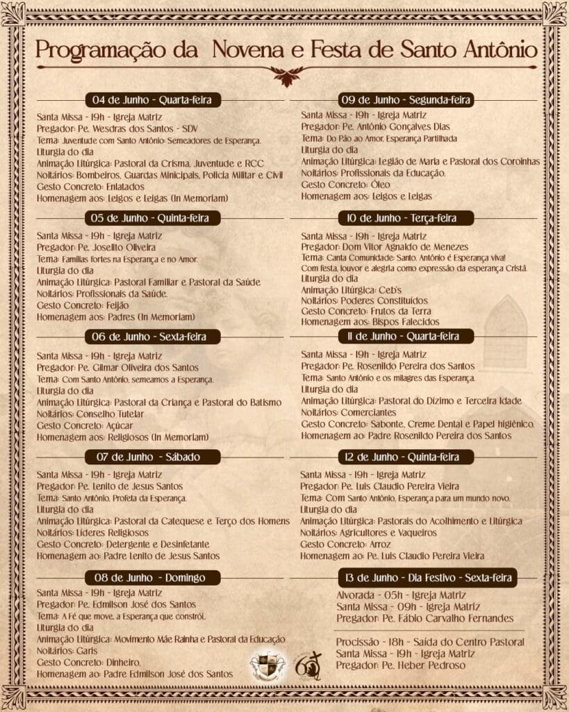 Confira programação do Novenário de Santo Antônio – Itarantim
