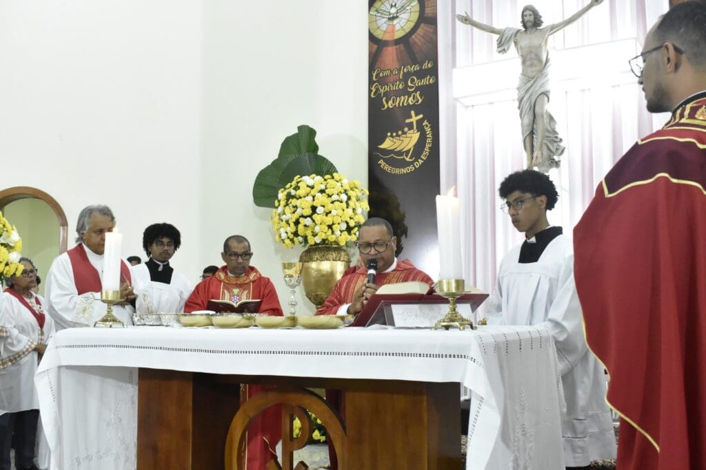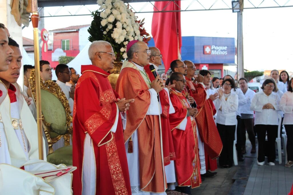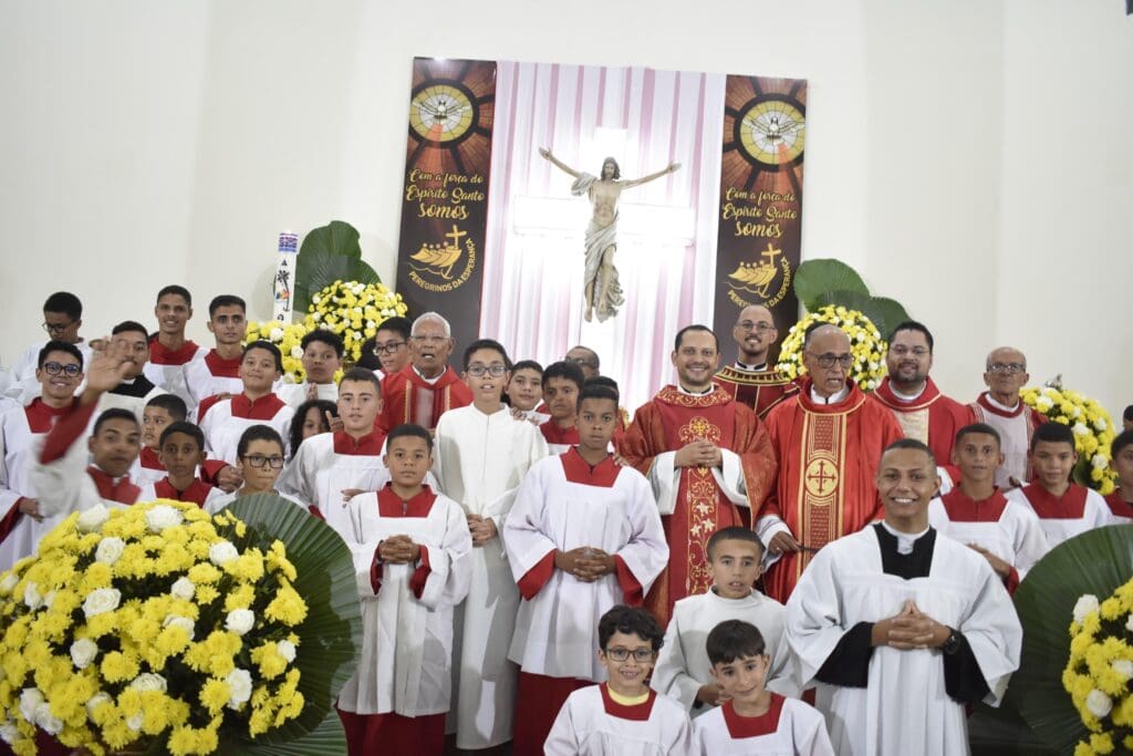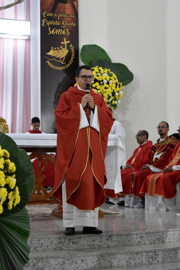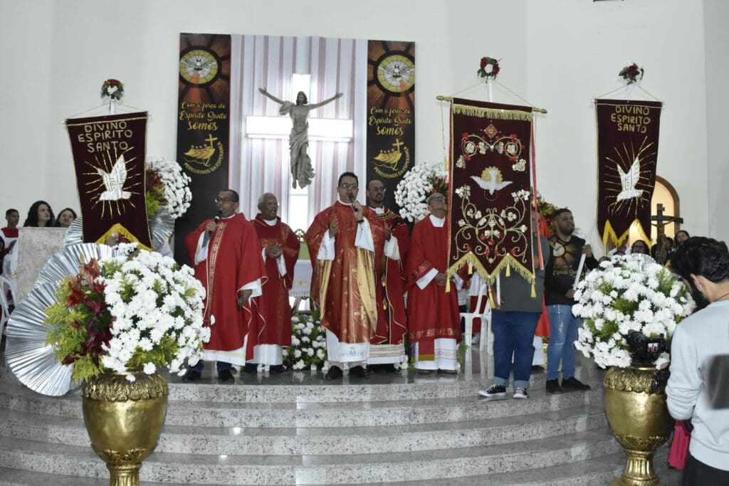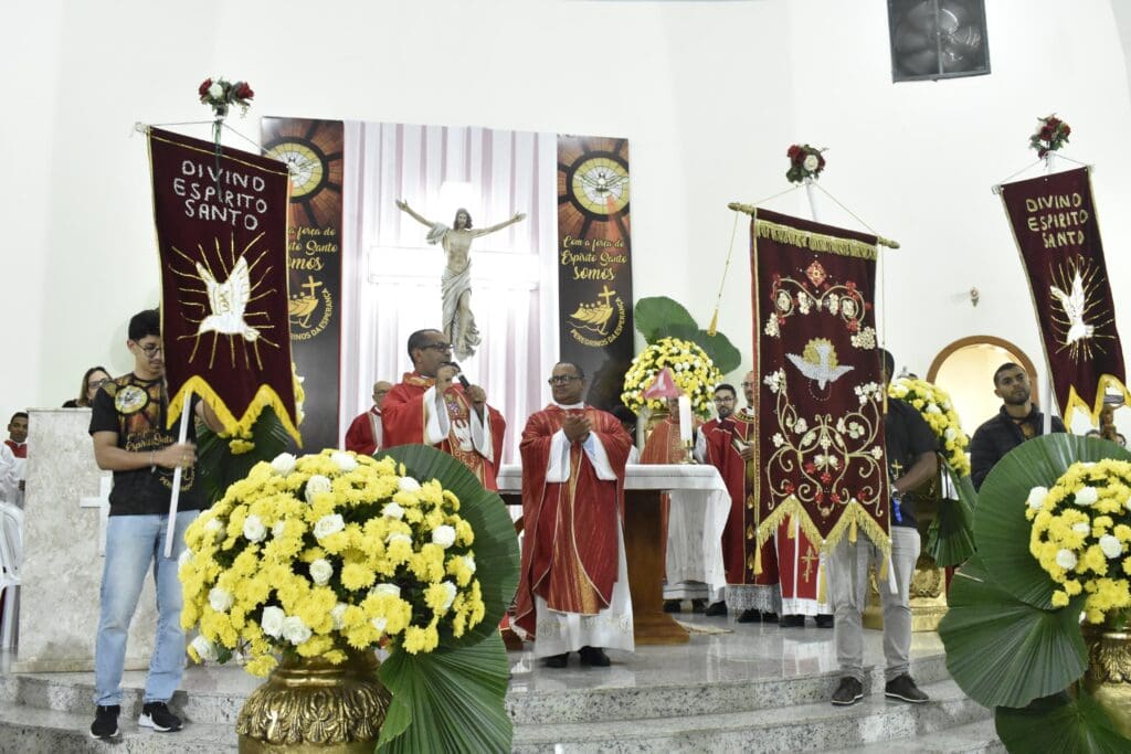 “Com a força do Espírito Santo, somos Peregrinos da Esperança” foi o tema principal da festa do Divino que foi encerrada com procissão e Missa presidida pelo Arcebispo Metropolitano, Dom Vítor Agnaldo de Menezes. Concelebrou a Eucaristia os Padres: Pe. Rosenildo Pereira dos Santos (Pároco), Pe. Uilton Pereira da Silva, Pe. João Santos Pires Júnior (Vigário). Os Diáconos Permanentes: Diác. João Cambuí da Silva, Diác. Manoel Elias Sampaio e Diác. Luciano Lima Santana participaram da Celebração juntamente com uma multidão de fiéis reunidos na praça da Igreja Matriz.