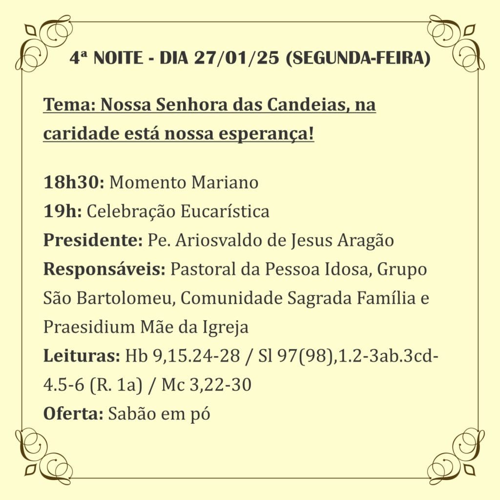 Não consintais que eu seja atingido por ferro, fogo e nem por peste alguma, e depois de todos estes benefícios de vossa clemência nesta vida, conduzi a minha alma para a morada dos anjos, onde com Jesus Cristo, vosso Filho e Nosso Senhor, viveis e reinais, pelos séculos.