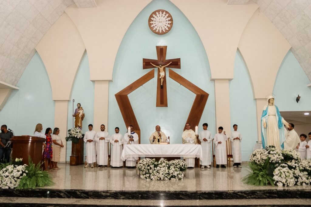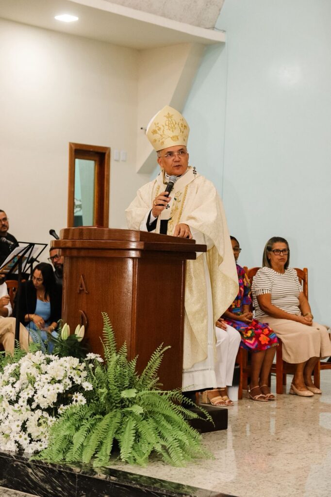 A Santa Missa foi presidida pelo Arcebispo Metropolitano, Dom Vítor Agnaldo de Menezes, e concelebrada pelo pároco, Pe. Noel Soares Novais. Serviu à liturgia o Diác. Luciano Lima Santana, Chanceler do Arcebispado. Também participaram do momento autoridades civis da cidade, que se uniram à comunidade em oração.