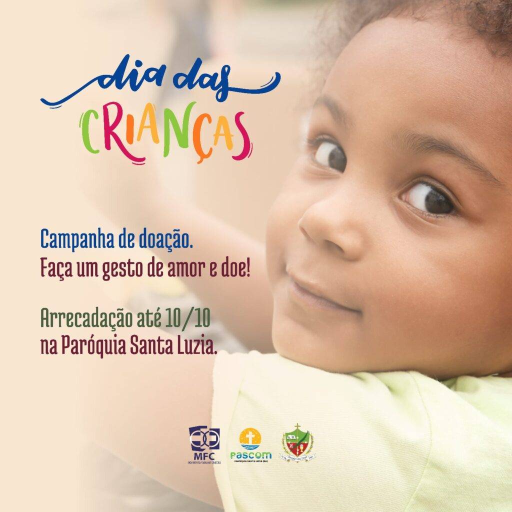 A Paróquia Santa Luzia, tendo um olhar caridoso para com as crianças de suas Comunidades, está realizando arrecadações para doar no dia das crianças.