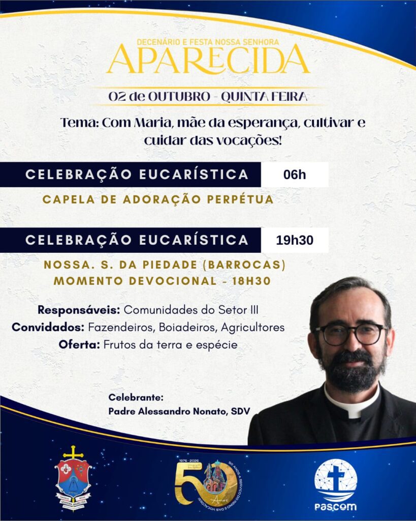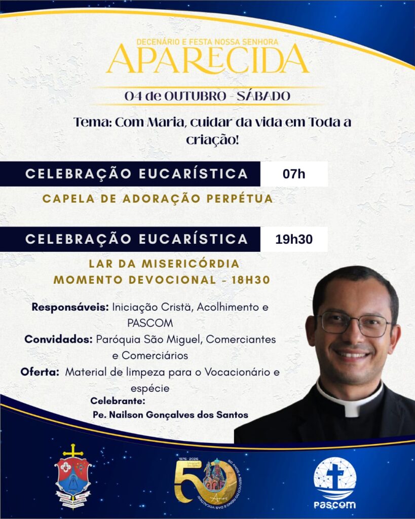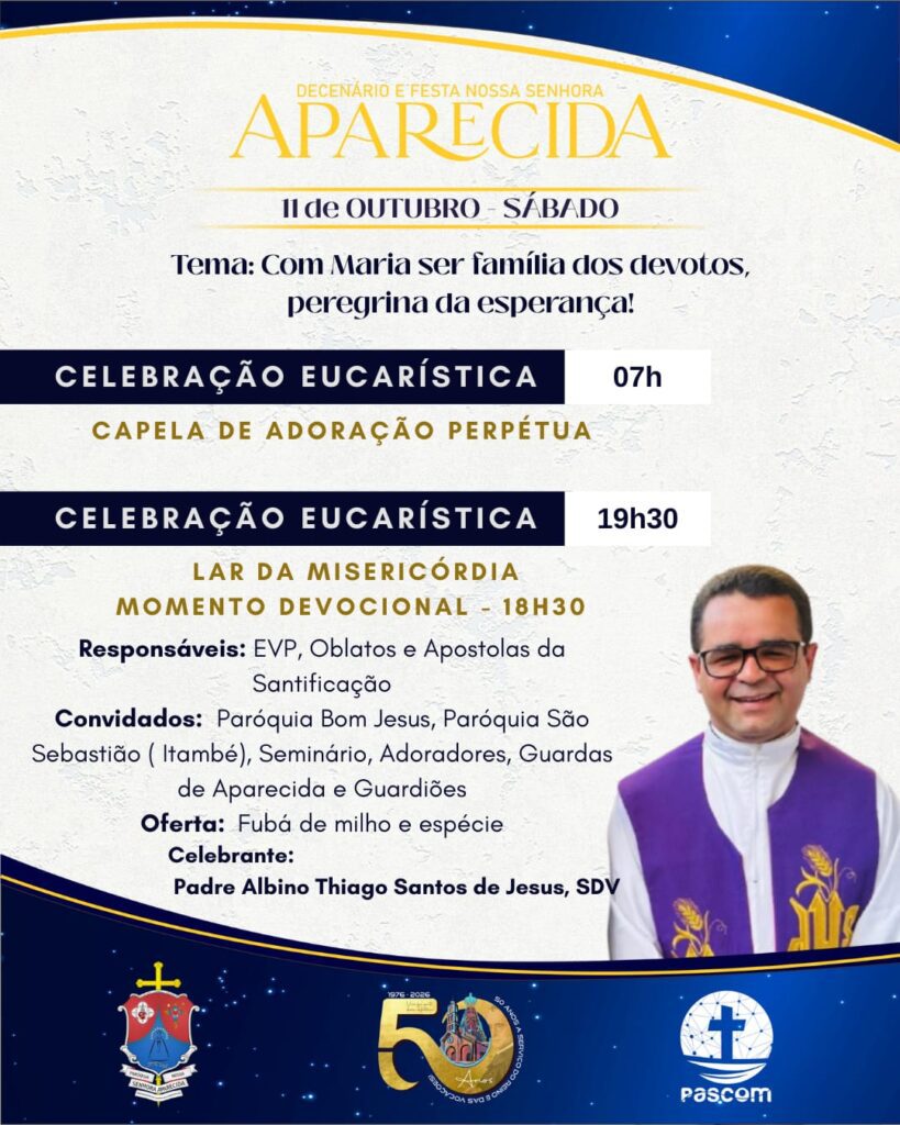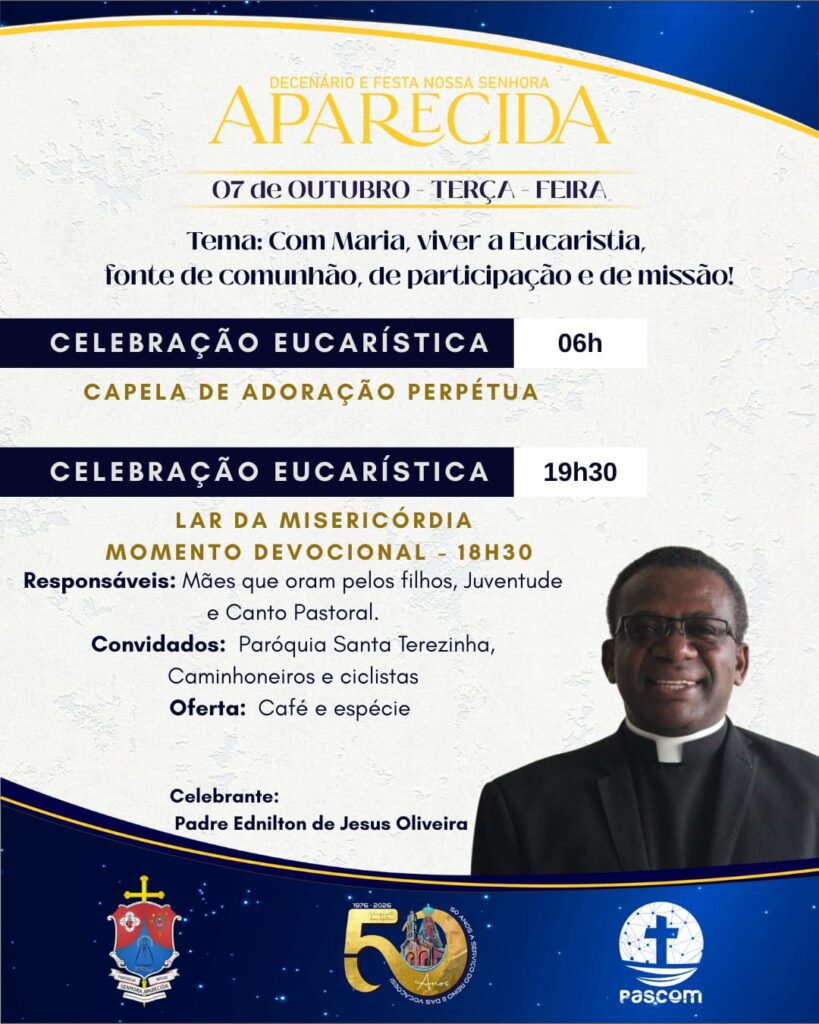 As Paróquias Nossa Senhora do Perpétuo Socorro, em Iguaí e Nossa Senhora Aparecida, em Vitória da Conquista, realizarão o novenário e festa em honra a sua Padroeira. As Celebrações acontecerão entre os dias 02 a 12 de outubro.