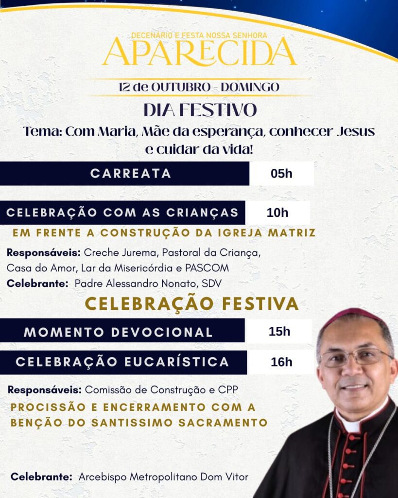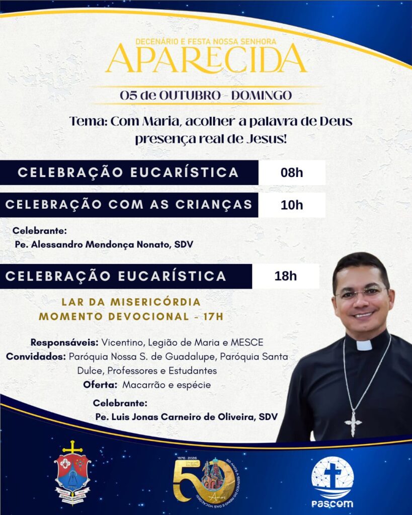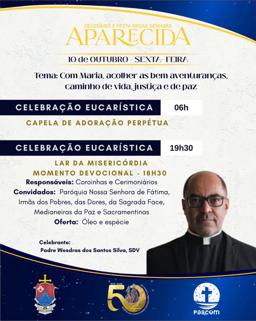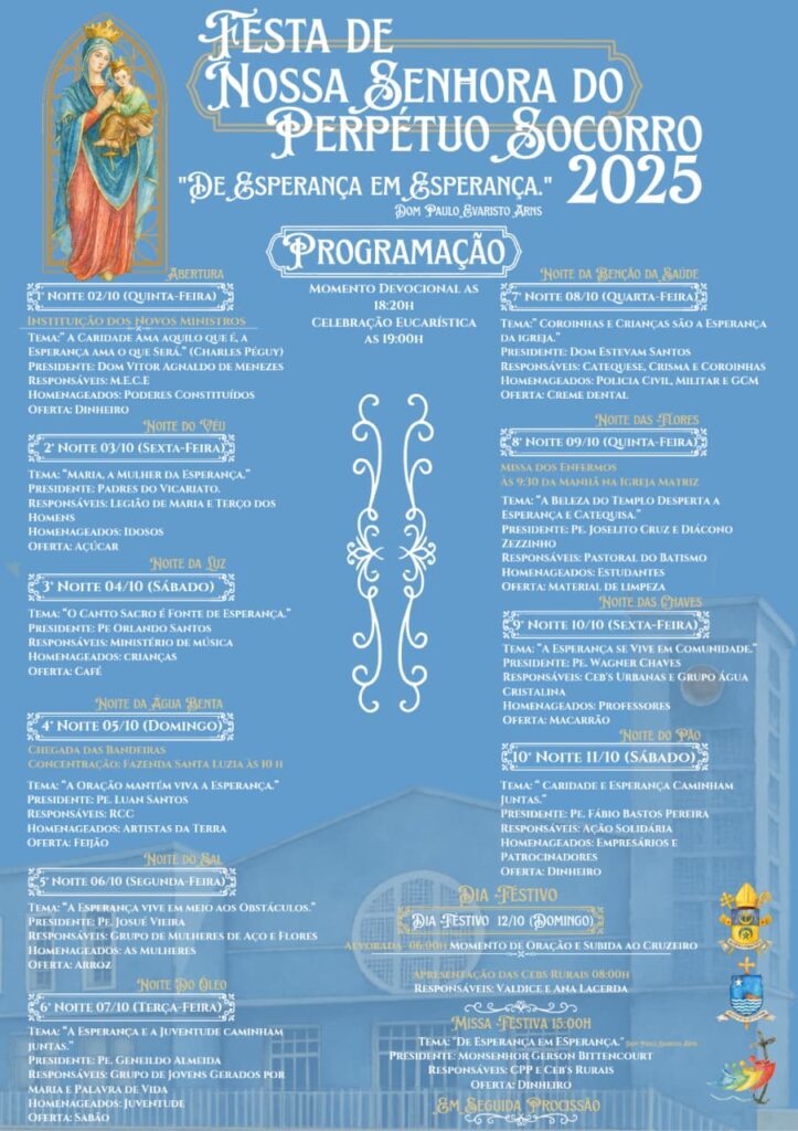 As Paróquias Nossa Senhora do Perpétuo Socorro, em Iguaí e Nossa Senhora Aparecida, em Vitória da Conquista, realizarão o novenário e festa em honra a sua Padroeira. As Celebrações acontecerão entre os dias 02 a 12 de outubro.