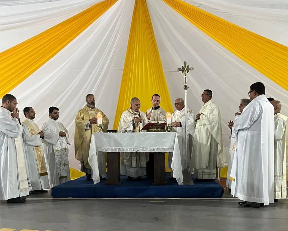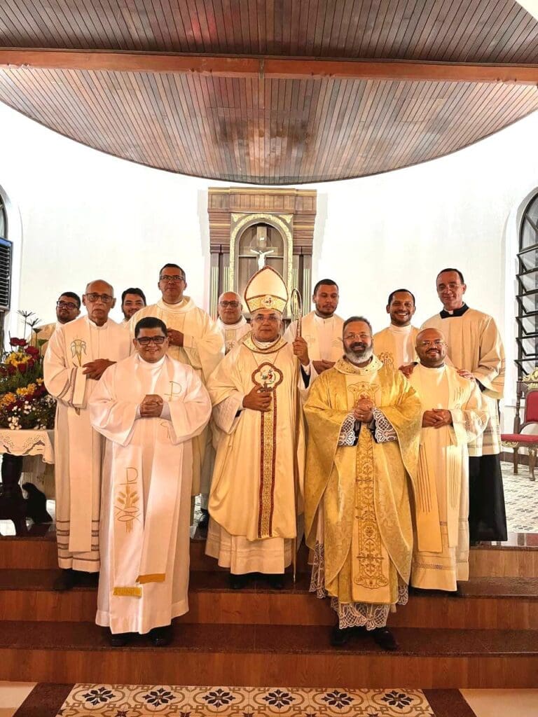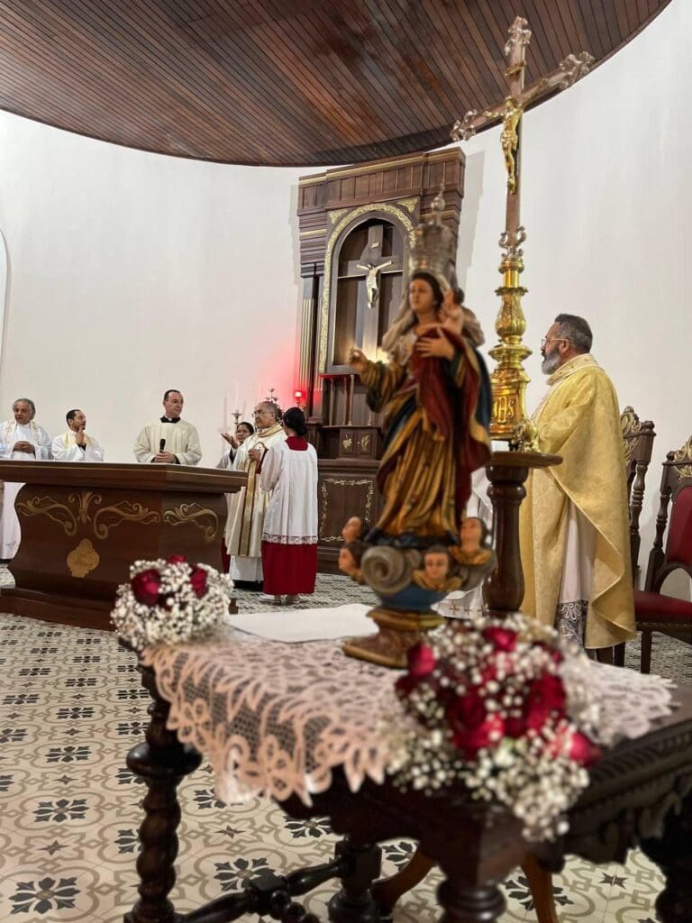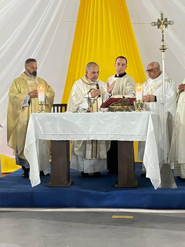 Na quinta-feira (15/05), às 19h em Itapetinga, o Arcebispo Metropolitano, Dom Vítor Agnaldo, celebrou a Santa Missa concelebrada pelos padres do Vicariato São João e outros Presbíteros. A Celebração ocorreu na quadra do Colégio das Irmãs dos Pobres de Santa Catarina de Sena, reunindo grande número de fiéis. O momento foi concluído com a procissão até a Paróquia São José, que se tornou também um local Sagrado de peregrinação dos fiéis da região.