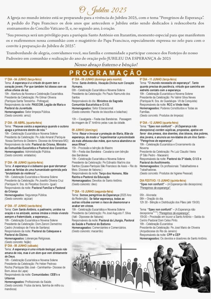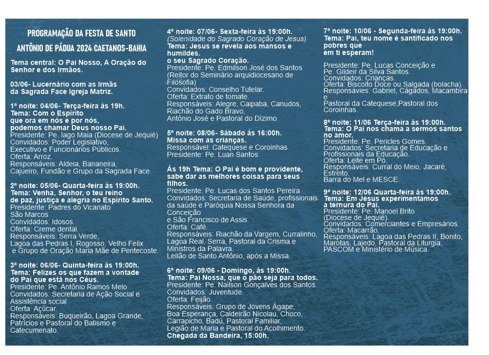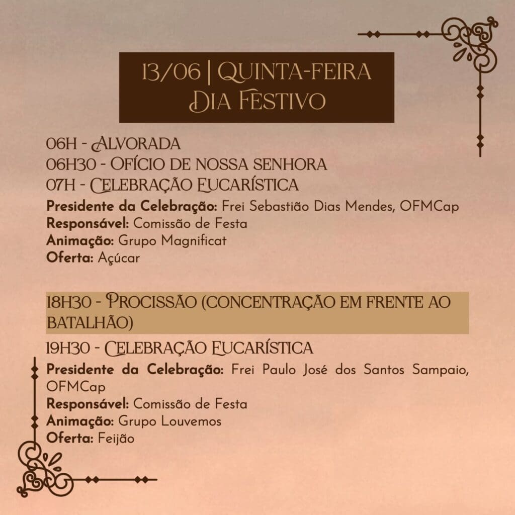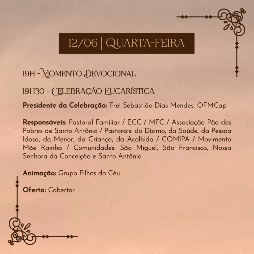 Confira, a seguir, a programação do período festivo das duas Paróquias Santo Antônio da Arquidiocese.