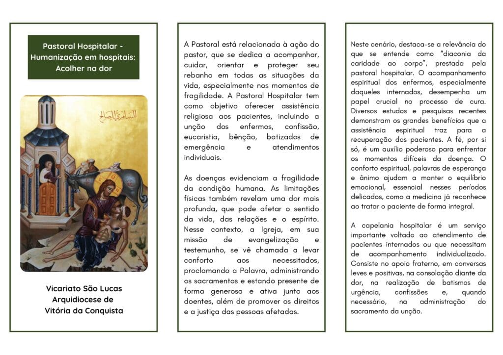 A Pastoral Hospitalar no Vicariato São Lucas da Arquidiocese, deu início às suas atividades na cidade de Vitória da Conquista, marcando presença nos principais hospitais com celebrações e auxílio espiritual aos pacientes, familiares e profissionais de saúde. Esta, visa oferecer consolo, esperança e fortalecer a fé em momentos delicados de enfermidade e tratamento.