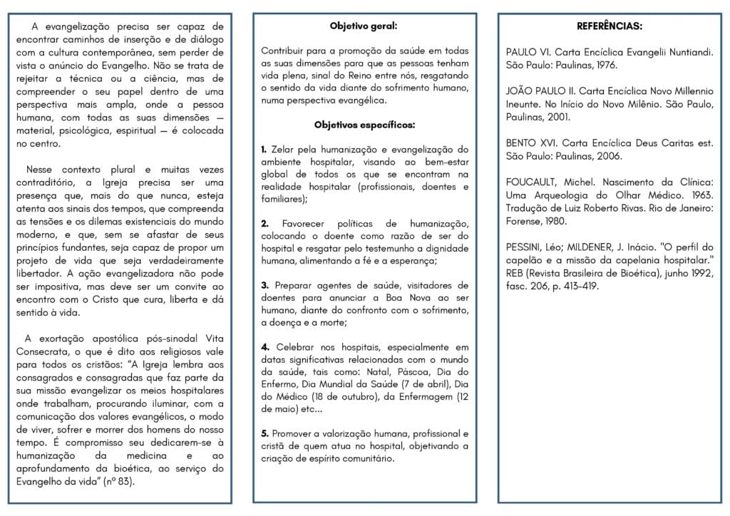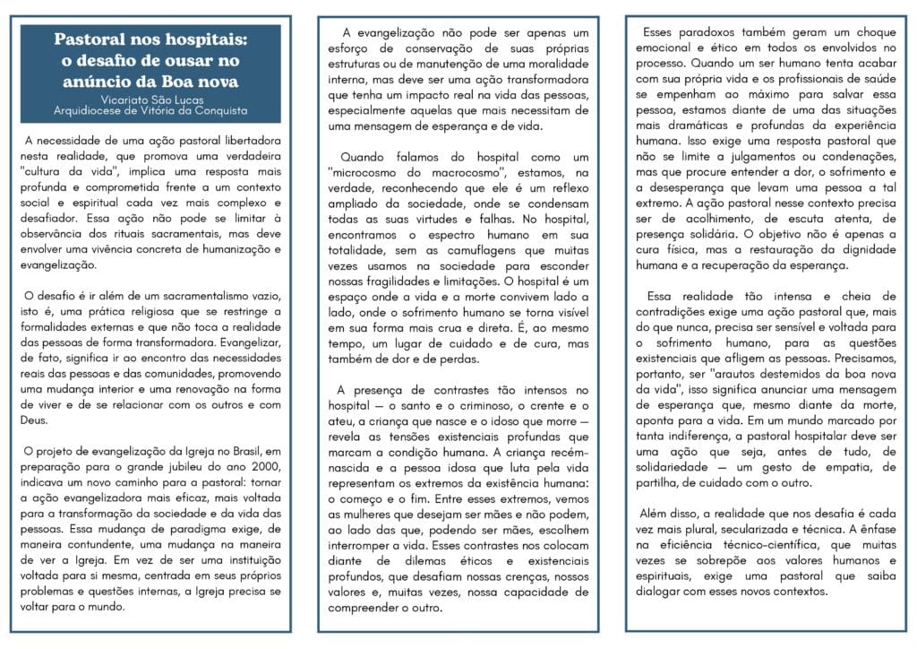 Para aqueles que desejam se aprofundar no tema da Pastoral Hospitalar, disponibilizamos os seguintes textos informativos:
