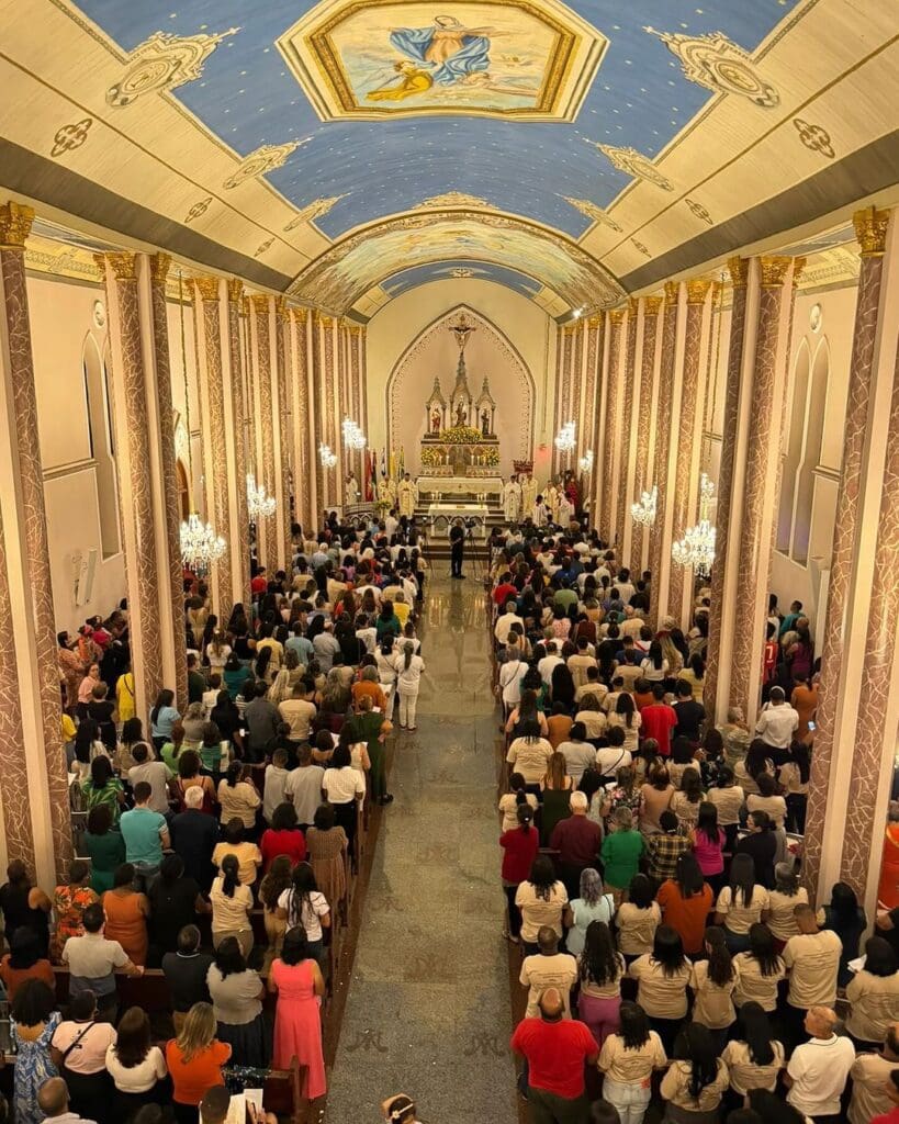 Após o término da Missa, as pessoas se dirigiram para uma recepção organizada no ginásio da Pastoral do Menor da Paróquia das Graças.
