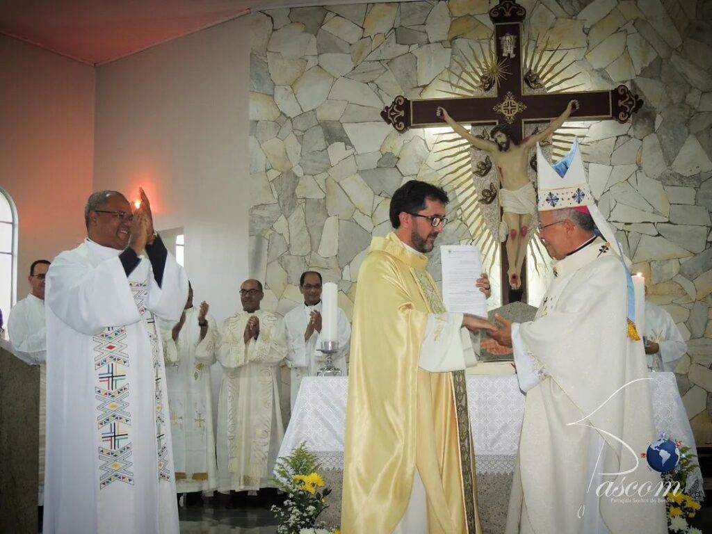 Pe. Irineu, recebeu do Arcebispo, as chaves da Igreja, a chave do Sacrário, os santos óleos e a estola roxa, concedendo as funções de ministrar para o povo de Deus através do Corpo e Sague de Cristo, do Batismo e da Confissão.