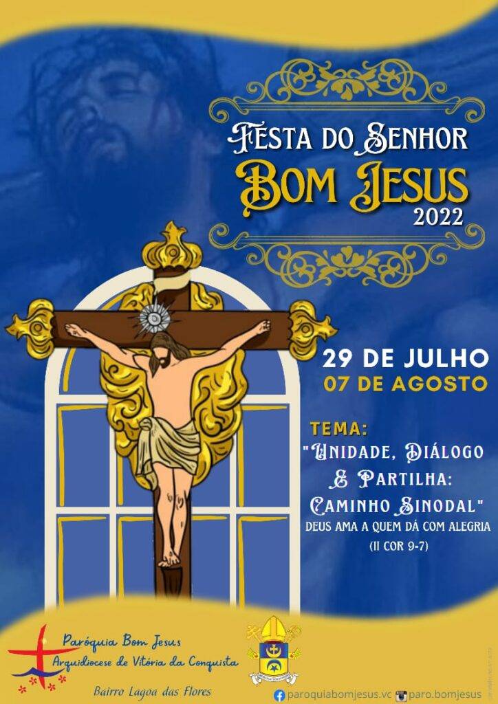 A Paróquia Bom Jesus, em Vitória da Conquista, situada no bairro Lagoa das Flores, inicia amanhã, 29 de julho, a Festa de seu Padroeiro, com o tema central: “Unidade, diálogo e partilha: caminho Sinodal” Deus ama a quem dá com alegria (II cor 9-7).