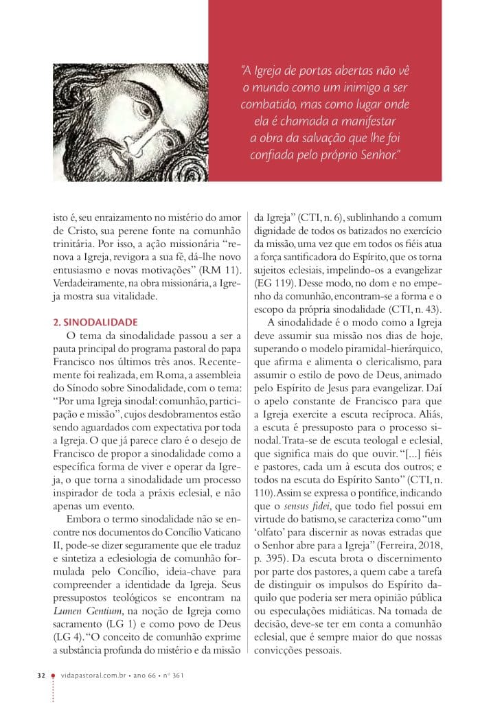 O Pe. Edmilson José dos Santos, que é mestre em Teologia Sistemático-Pastoral pela Pontifícia Universidade Católica do Rio de Janeiro (PUC-Rio) e Reitor do Seminário Arquidiocesano de Filosofia Nossa Senhora das Vitórias, teve um texto seu publicado recentemente na Revista Vida Pastoral, na edição atual, e o texto consiste em parte do seu trabalho de conclusão do mestrado. A revista Vida Pastoral da PAULUS é uma publicação bimestral, que contém artigos sobre teologia, espiritualidade, ética cristã, Patrística e outros temas, além de roteiros homiléticos em sintonia com o magistério da Igreja.