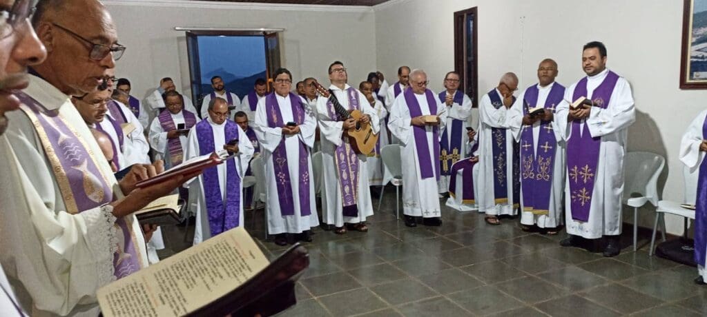 Em consonância com o que pede nossa Igreja, os Padres da Arquidiocese, juntamente com o seu Arcebispo, estão recolhidos em retiro espiritual desde segunda-feira (19) na cidade de Rio de Contas – BA, rezando e sendo conduzidos às meditações sobre “a oração que Jesus nos ensinou – o programa de vida de todos os seus discípulos”. O pregador do retiro é o Bispo de Almenara, Dom José Hamilton de Castro.