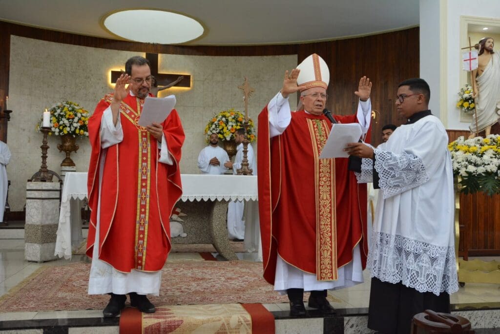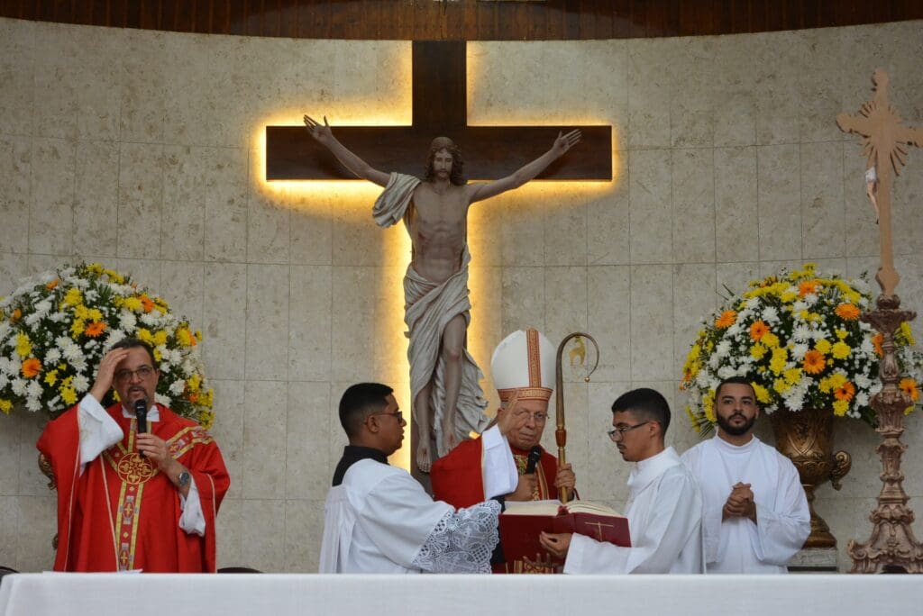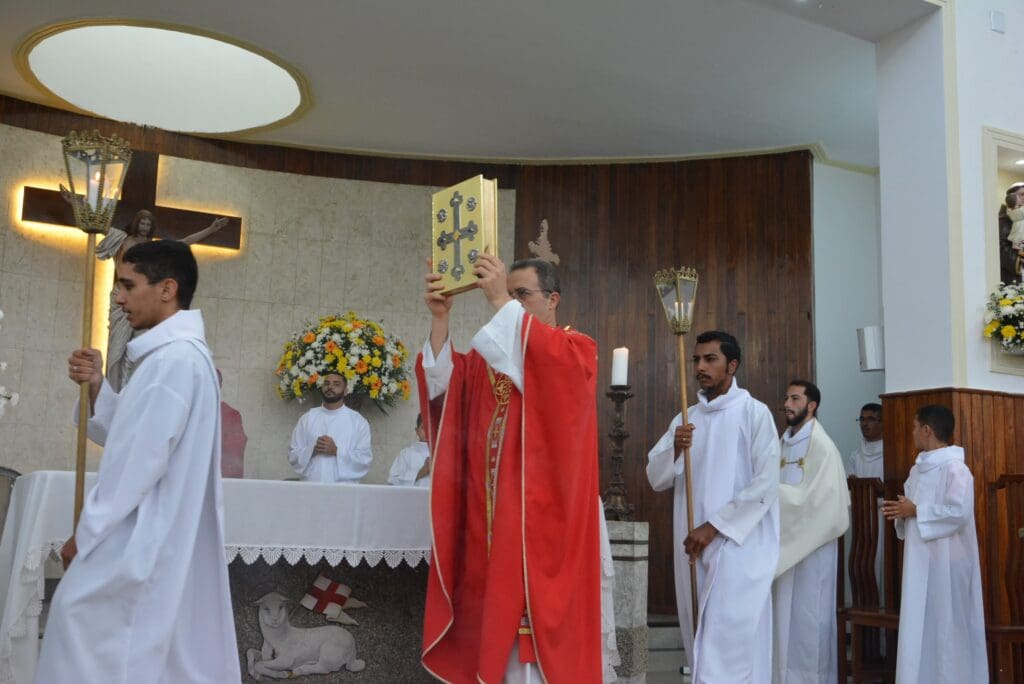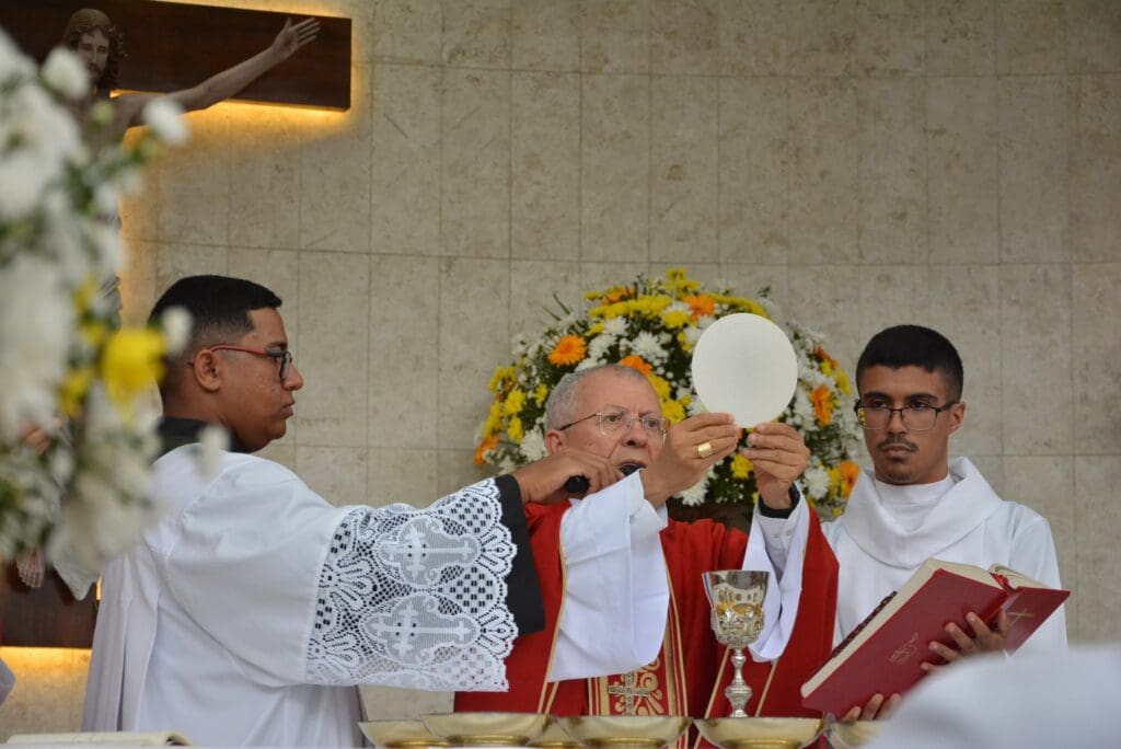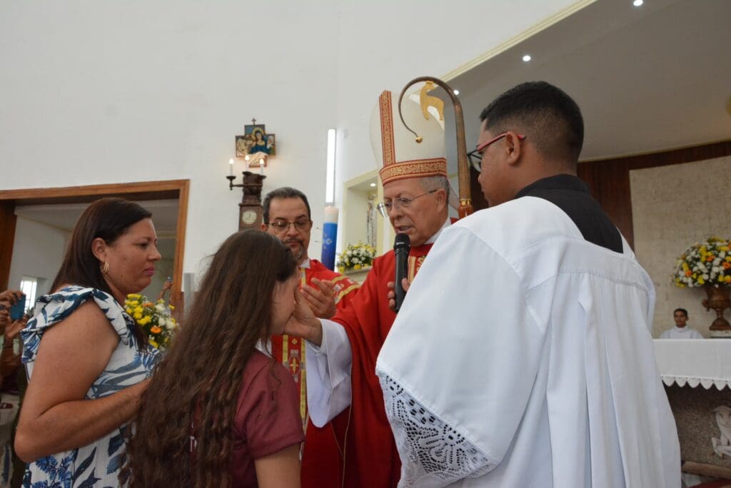A celebração das 10h30 na matriz foi presidida pelo Administrador Apostólico de Vitória da Conquista, Dom Josafá Menezes da Silva; que conferiu o Sacramento da Confirmação para 57 jovens e adultos da Paróquia.