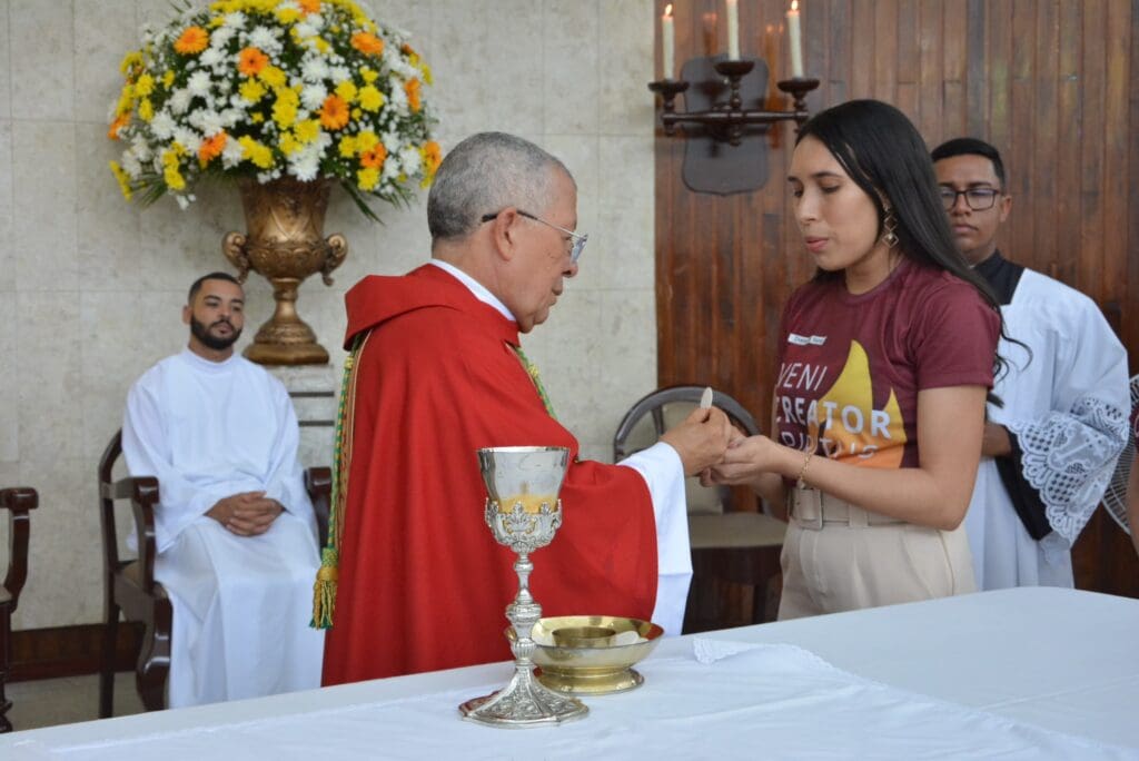 Além do mais, eles receberam a unção com o óleo, que é consagrado anualmente na Missa dos Santos Óleos, celebrada durante a Semana Santa. O Sacramento da Crisma é um dos três Sacramentos da Iniciação Cristã e marca a maturidade do fiel na fé católica, que agora assume-a com responsabilidade. Portanto, com este Sacramento, Cristo espera de cada um o seguimento da vida cristã com decisão.
