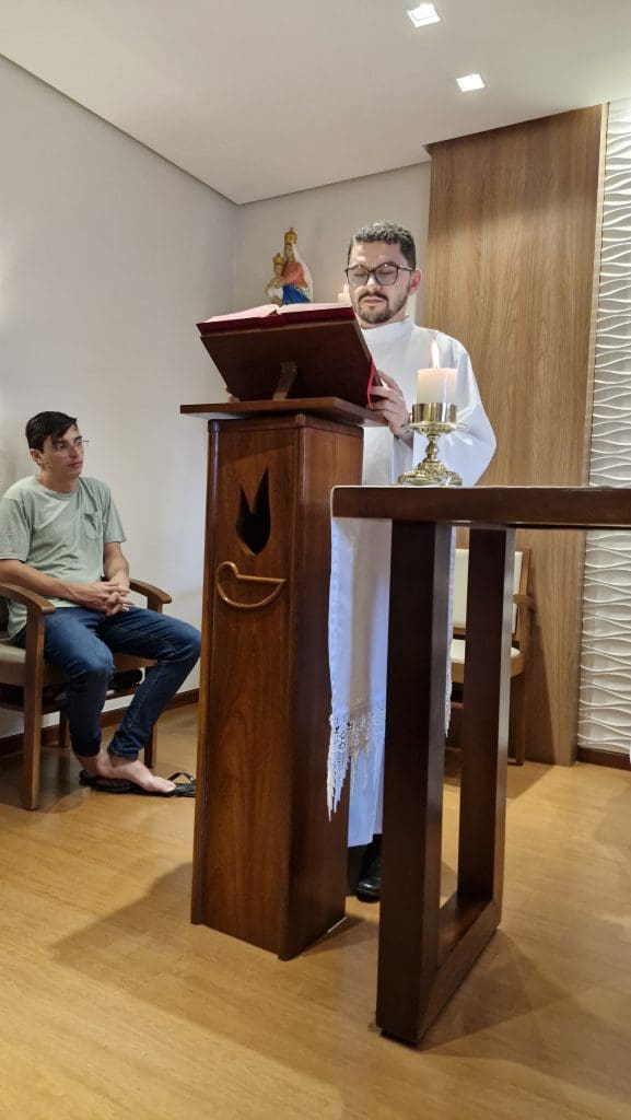 A celebração ocorreu como de costume, com o acendimento da vela do Jubileu da Esperança. Na homilia, o Reitor fez votos de um bom semestre e uma boa caminhada na comunidade formativa. Logo após a Santa Missa, a Comunidade reuniu-se no refeitório para o jantar.