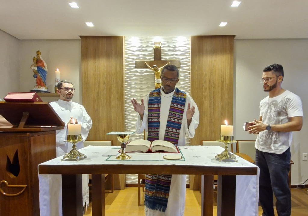 No dia 3 de fevereiro, a Comunidade de Teologia Nossa Senhora das Vitórias iniciou as suas atividades formativas do ano de 2025 com a celebração da Eucaristia, presidida pelo Reverendíssimo Reitor, Padre André Costa Santos. Estavam presentes os Seminaristas do Segundo Ano de Teologia (Álife Araújo Silva, Eric Rocha de Jesus e Gustavo do Nascimento Santos); do Terceiro Ano de Teologia (Célio Barbosa da Silva, João Pedro Sena Gomes, Luís Augusto Silva Xavier e Rômulo Prates Silva) e do Quarto Ano de Teologia (Rogério da Silva Moraes).