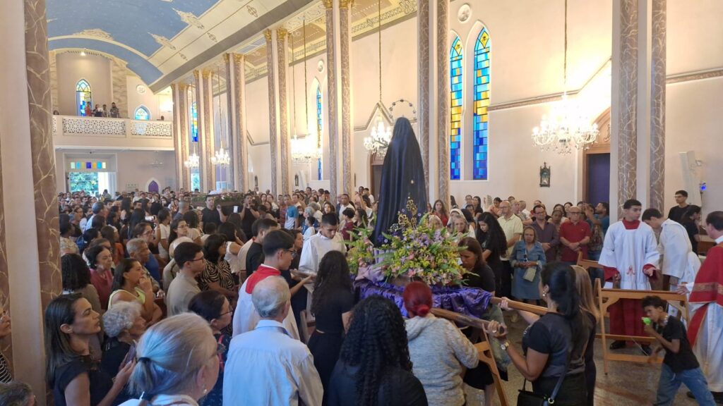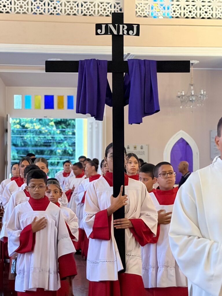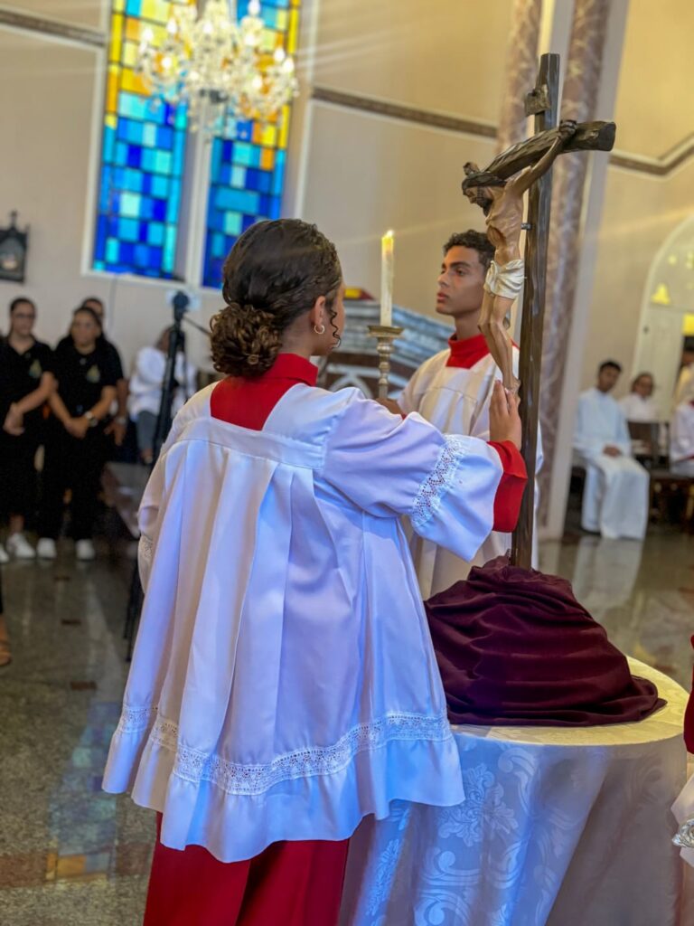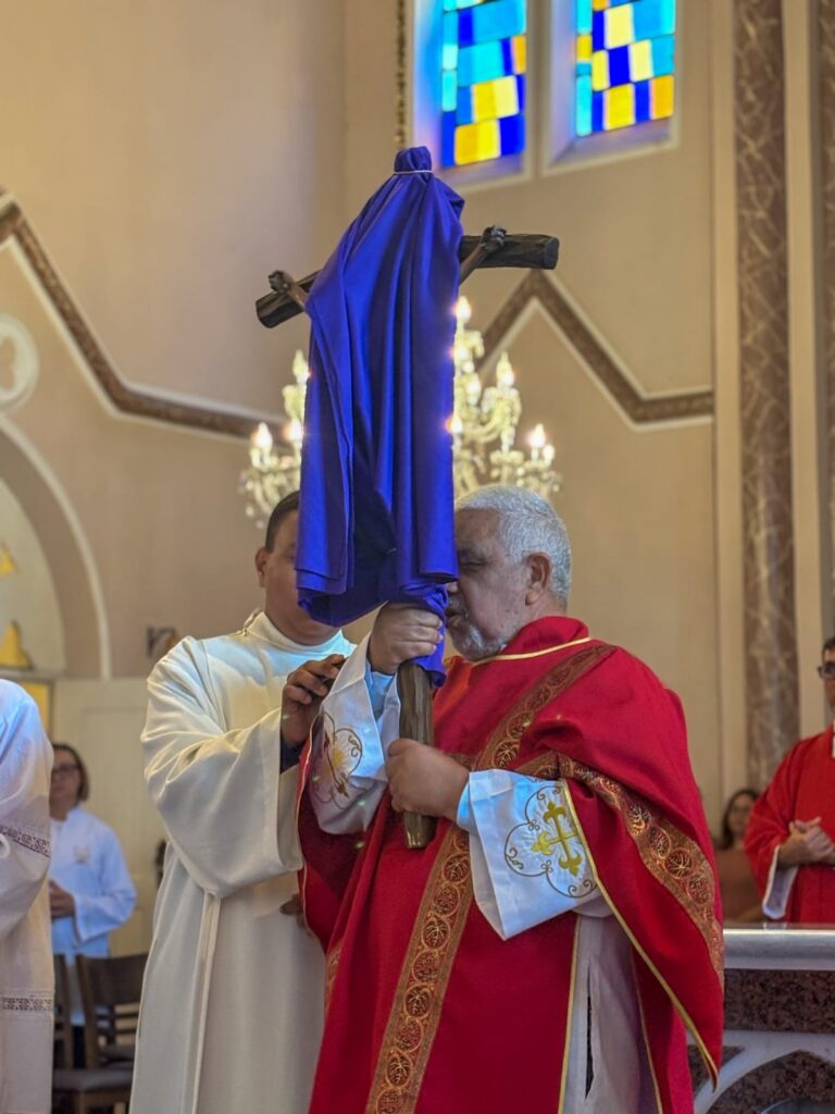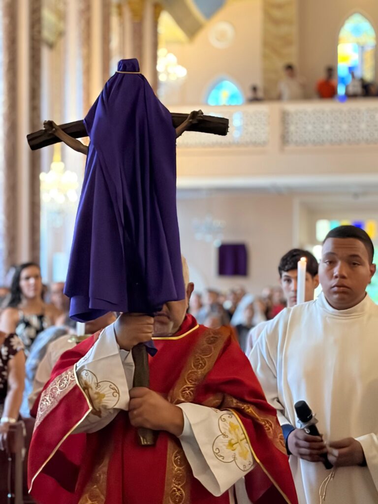 Na sexta-feira Santa da Paixão do Senhor, dia 03 de abril, A Paróquia Nossa Senhora das Vitórias – Catedral Metropolitana, celebrou às 15h com profunda fé, o segundo dia do Tríduo Pascal, único dia do ano em que a Igreja não celebra a Missa, mas a ação litúrgica da Paixão do Senhor e a adoração à Cruz.