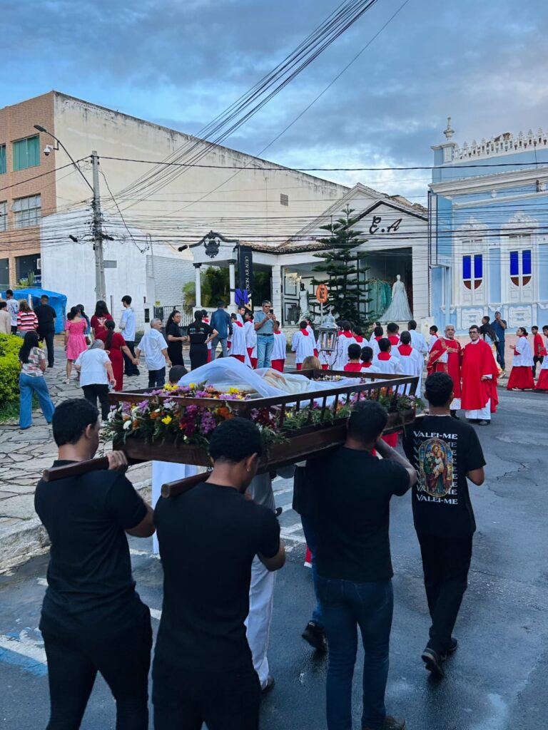 Após a celebração foi realizada a procissão com a imagem de Nosso Senhor morto e de Nossa Senhora das Dores. Ao final da procissão, os fiéis puderam venerar a imagem recordando a entrega total de Jesus pela humanidade.