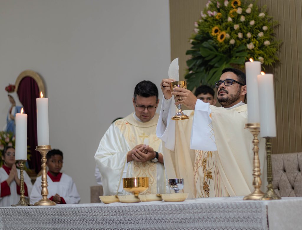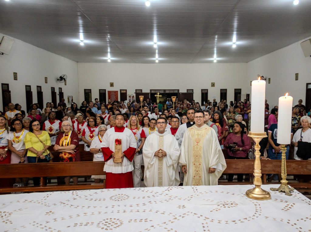 A segunda noite tratou do tema “a oração nos coloca em comunhão com o Pai: pai nosso que estais no Céu”. O Pe. Luís Jonas Carneiro de Oliveira, SDV, Vigário Paroquial da Paróquia Nossa Senhora Aparecida, foi o presidente da celebração eucarística nesta noite.