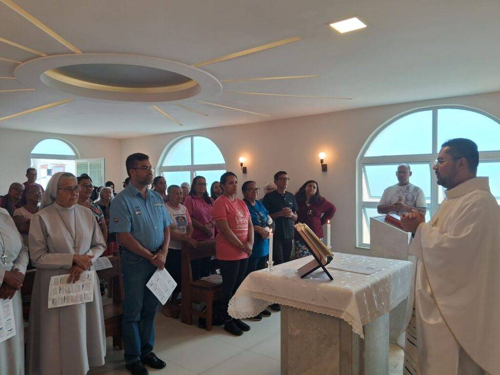 Ao sábado, o Pe. Geneildo Almeida Lima, Pároco da Paróquia Nossa Senhora Rainha da Paz e São Vicente de Paulo, celebrou a Santa Missa festiva de Nossa Senhora Medianeira, trazendo a reflexão a respeito do seguinte tema: a exemplo de Nossa Senhora Medianeira somos chamados a viver nossa vocação como Graça e Missão.