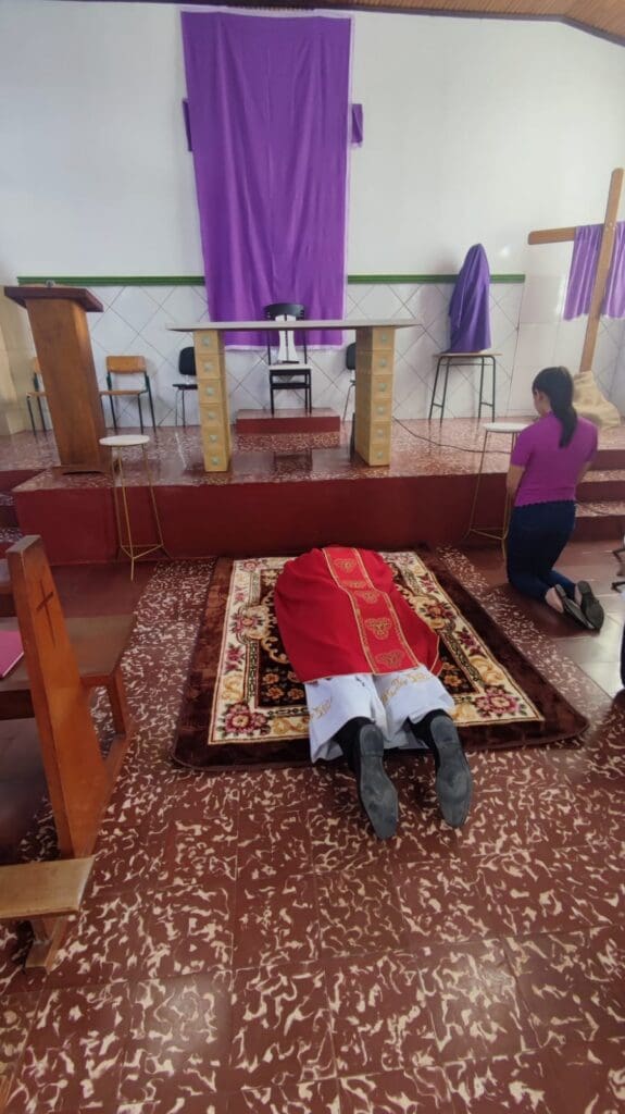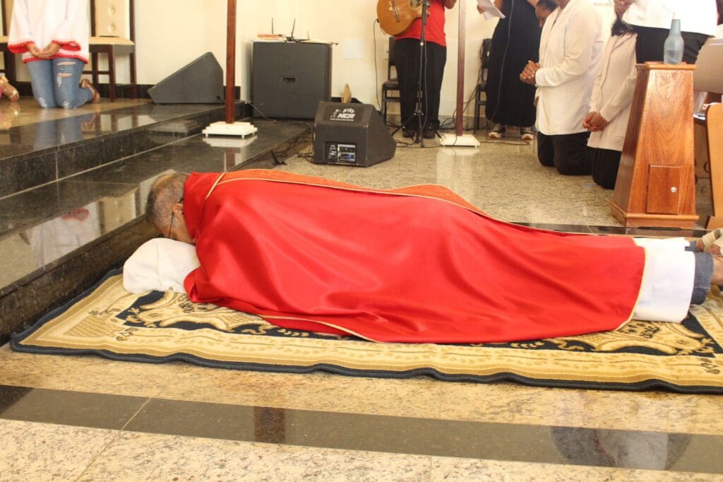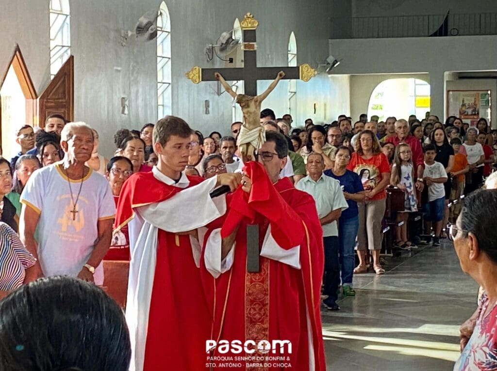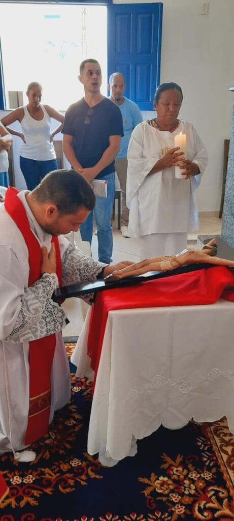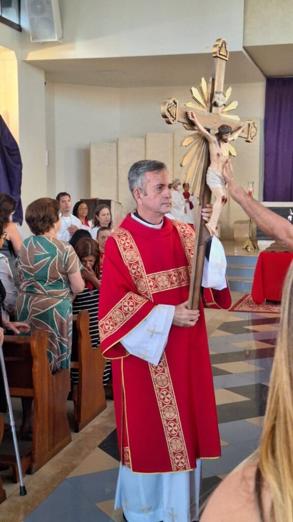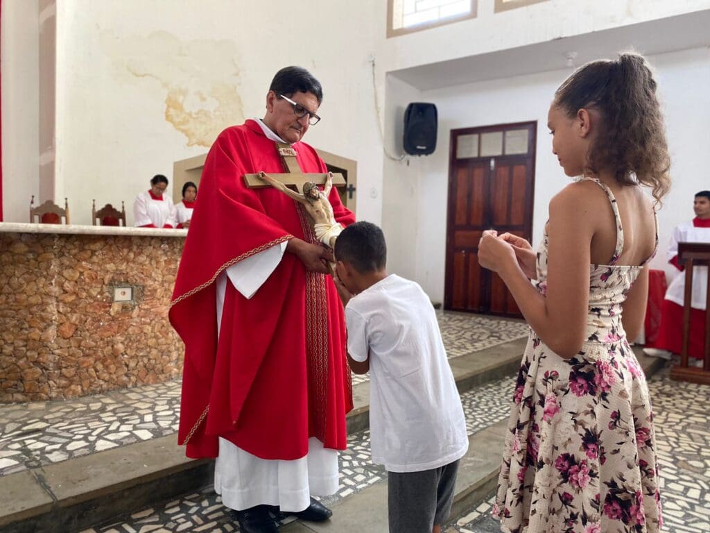 O segundo dia do Tríduo Pascal é a celebração da Paixão do Senhor, na Sexta-feira da Semana Santa. Sempre se celebra às quinze horas, no momento em que Ele deu sua vida por nós! Não há celebração da eucaristia neste dia. Tudo em silêncio. É dia de jejum. Os bispos, padres e diáconos entram em procissão e, diante do altar, se prostram no silêncio. Depois, temos as leituras, que são profundas e significativas. Seguem-se a Oração Universal. Ainda, temos o momento da ‘Adoração da cruz’. Aqui o presidente da celebração canta: ‘Eis o lenho da cruz, do qual pendeu a salvação do mundo!’ E todo o povo responde: ‘Vinde, adoremos’. É o momento da celebração e adoração da cruz de Cristo, que deu sua vida por nós. Enfim, temos a comunhão eucarística, que se arruma o altar para esta finalidade. Depois o altar volta à sua normalidade. Este é um dia diferente, de mais silêncio, de maior oração e, nosso coração deve estar mais aberto a perdoar tudo o que for necessário.
