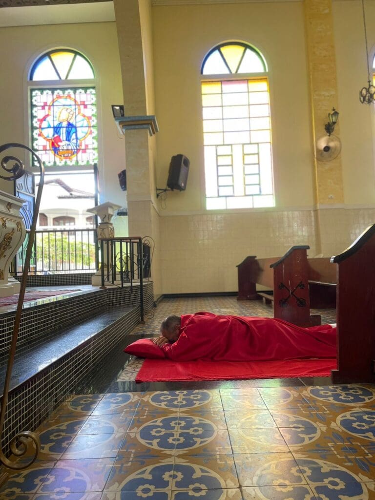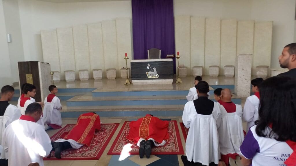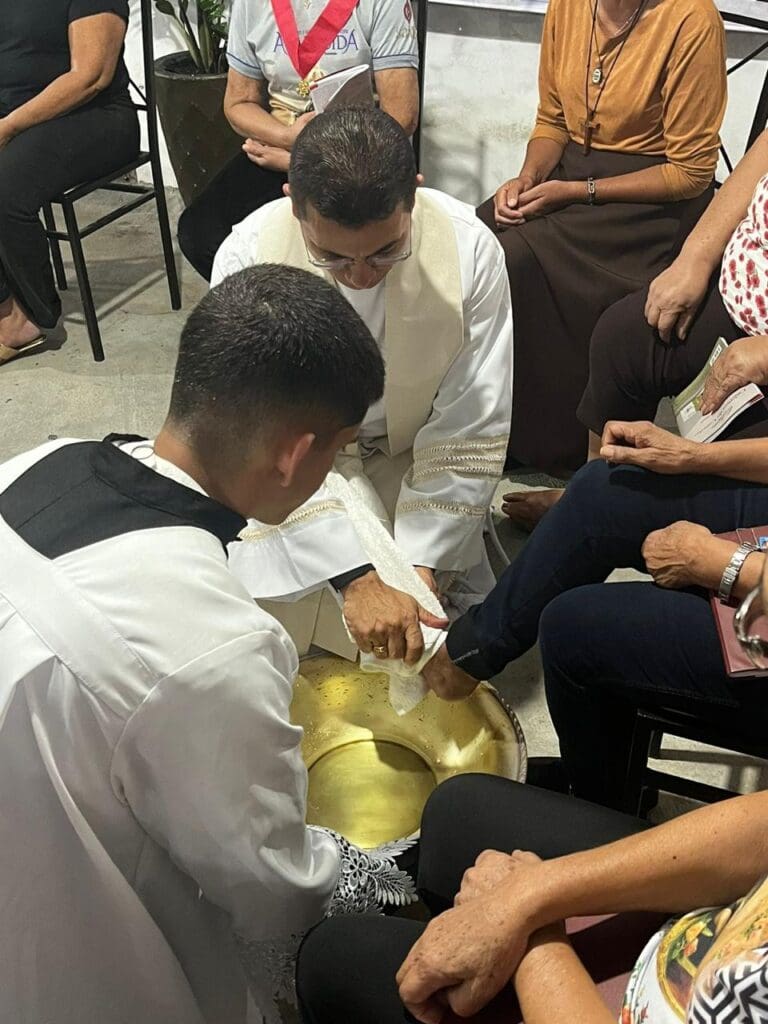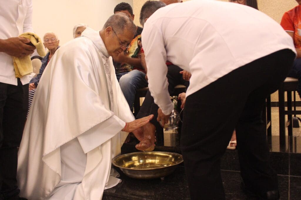 “O Tríduo Pascal inicia na Missa Vespertina da Ceia do Senhor, na Quinta-feira Santa. O evangelho será sempre aquele de Jo 13,1-15, que fala de Jesus Cristo, que lava os pés dos apóstolos. ‘Era antes da festa da Páscoa. Jesus sabia que tinha chegado a sua hora de passar deste mundo para o Pai; tendo amado os seus que estavam no mundo, amou-os até o fim’ (Jo 13,1). E Jesus lava os pés dos onze que estão com ele. Este texto nos convida a refletir sobre o sentido da Eucaristia, do sacerdócio e do amor fraterno. Depois de distribuir a eucaristia aos fiéis, os ministros são convidados a limpar o altar. Levamos para outro lugar o Cristo presente na Eucaristia e, no silêncio, sem rezar em voz alta, rezamos a Deus.